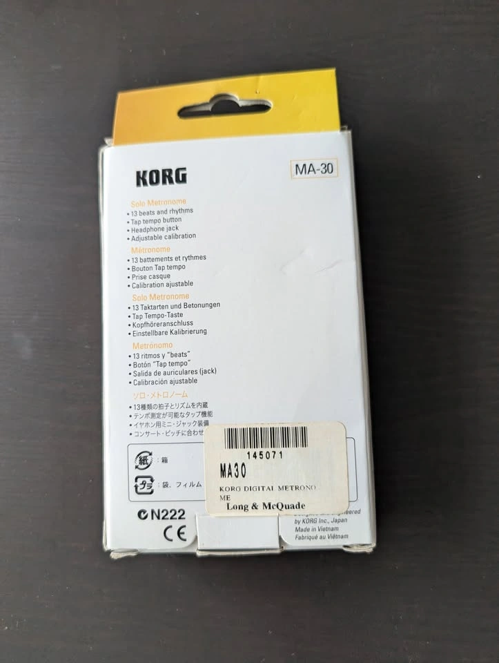 Korg Solo Metronome with: 13 beats and rythms Tap tempo button Headphone jack Adjustable calibration