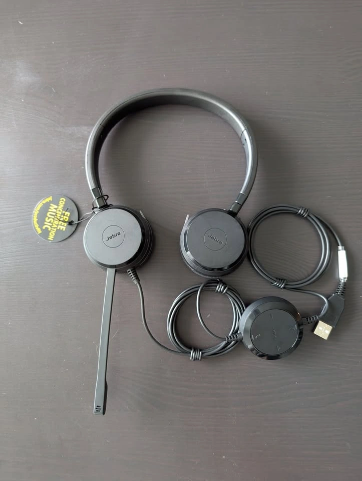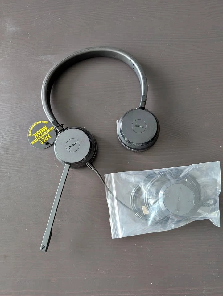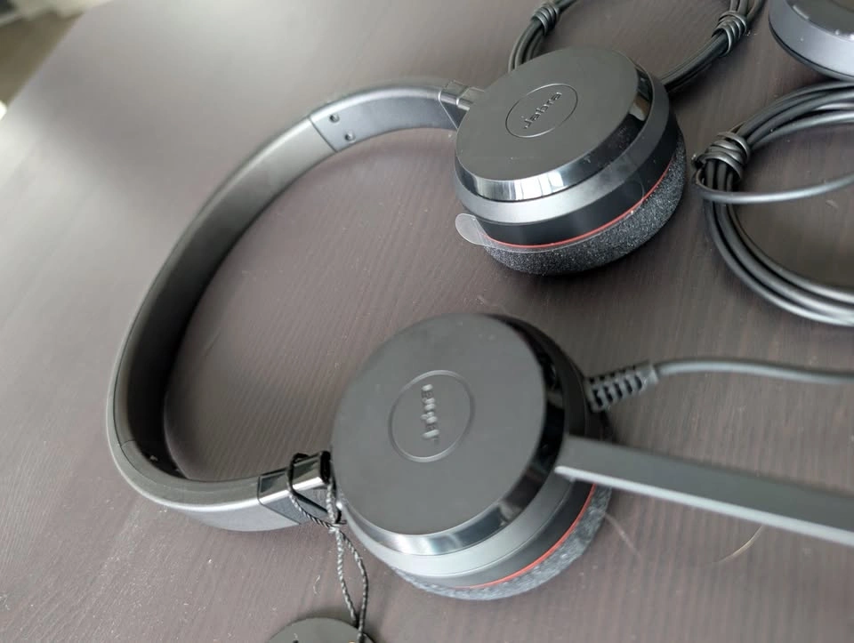 Jabra work-from-home / home-office headphones for calls. Brand new, never used, plastic films still attached. Used once for testing.