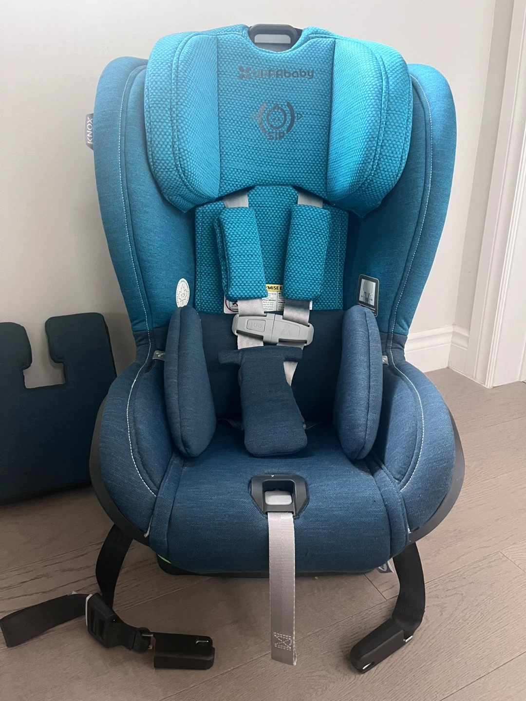 Like new Uppababy KNOX carseat with Koroyd base (originally packaged together) manufactured in 2021. Comes with lifetime warranty, all documentation and booklets, just missing the box. Also comes with extra padding and booster from original purchase which can be removed. This car seat was installed in a car for one day and has otherwise been unused. All material and original stickers are in mint condition, no scratches. “Lucca” colour is beautiful vibrant teal.