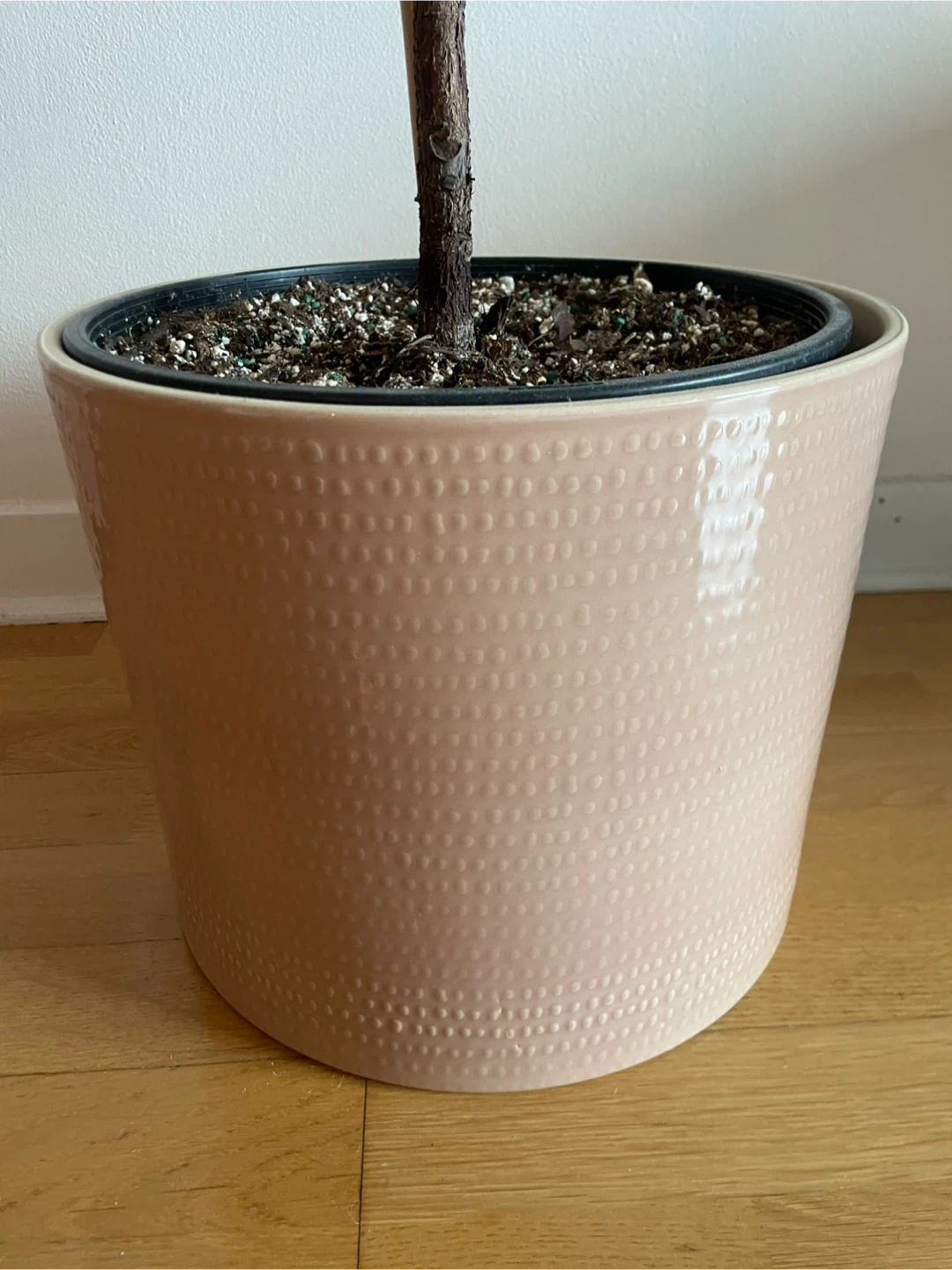 I'm selling a healthy fiddle leaf fig tree. It comes in a cute pink pot that will add a touch of colour to any room.