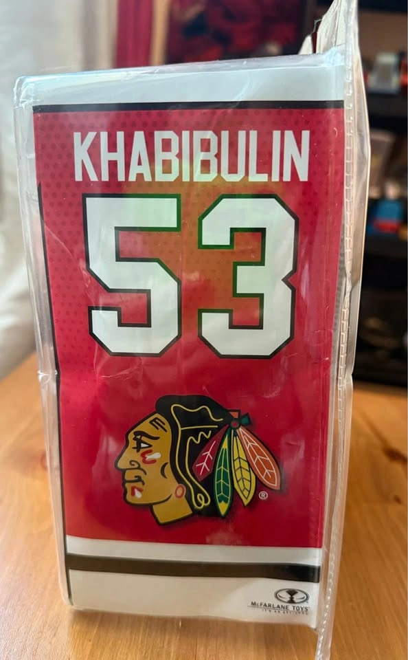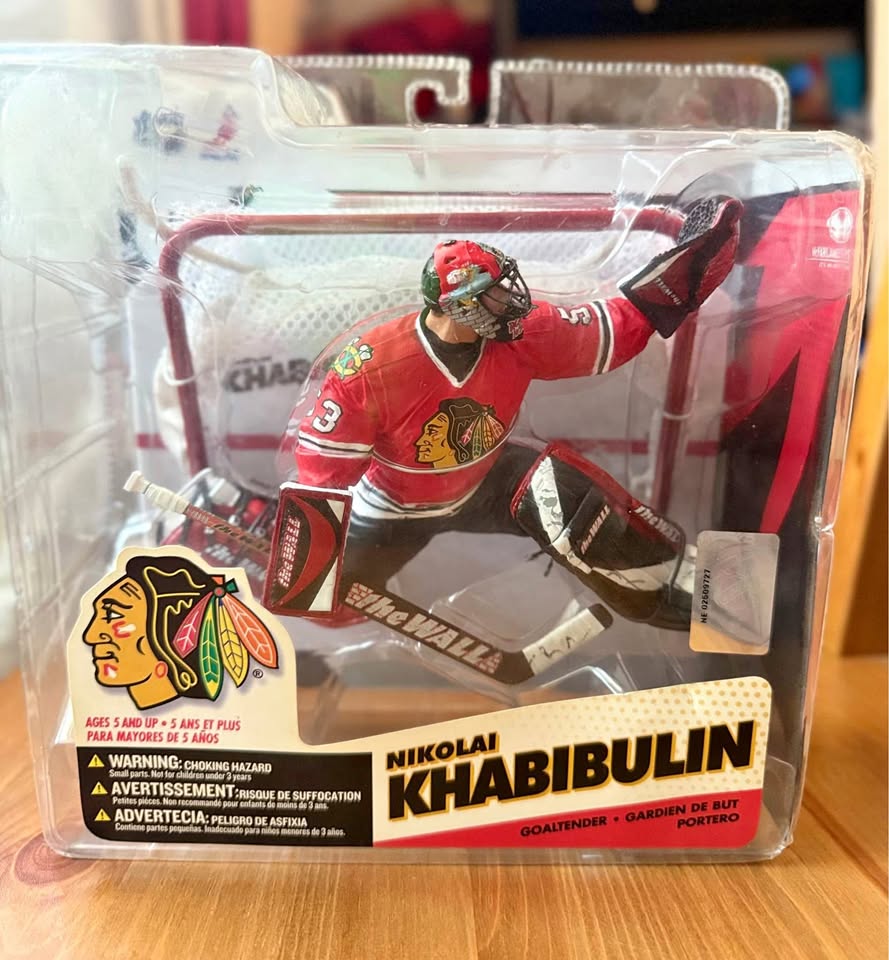 This is a Nikolai Khabibulin action figure from McFarlane Toys' NHL Series 12, featuring him in his Chicago Blackhawks uniform. New and Sealed.