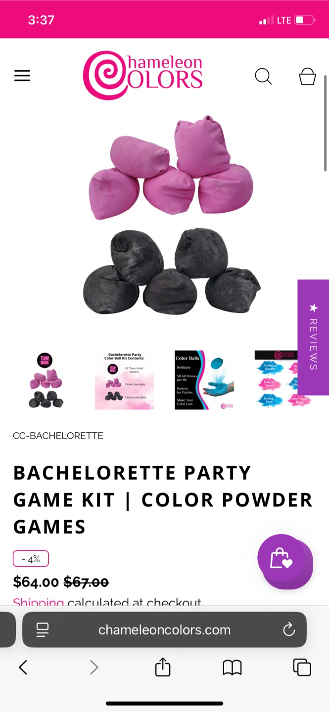 Get ready to add some fun to your bachelorette party with this Chameleon Colors Colour Powder Kit! Includes 5 pink and 5 black colour balls, perfect for games and colour wars. Each ball is 4.5 x 1.5 in size and weighs .4 pounds. This kit is premium quality, easy to clean, made in the USA, gluten-free, safe for kids & pets, environmentally friendly, and nontoxic.