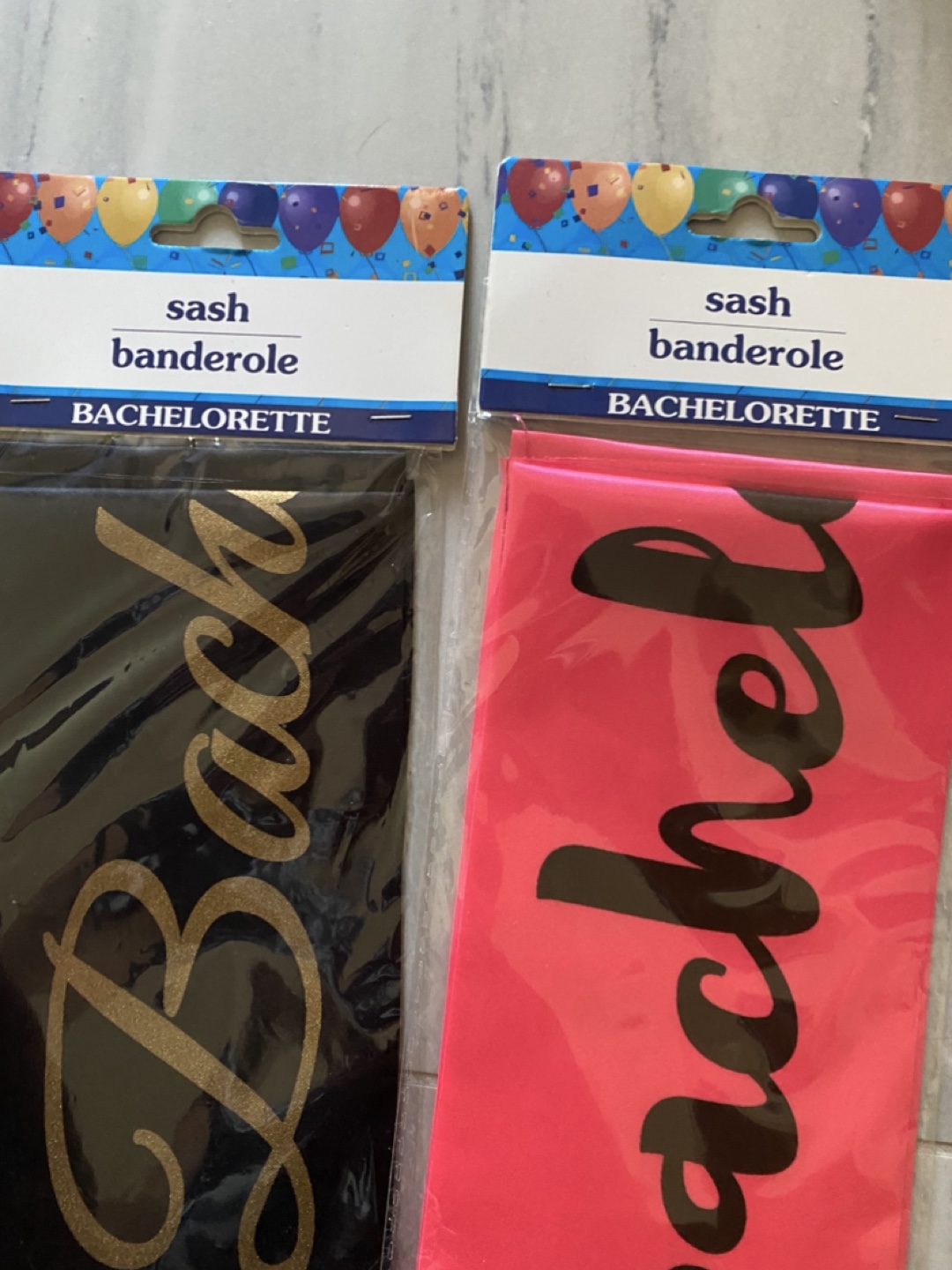 Bachelorette party colour powder activity kit and two bachelorette sashes.