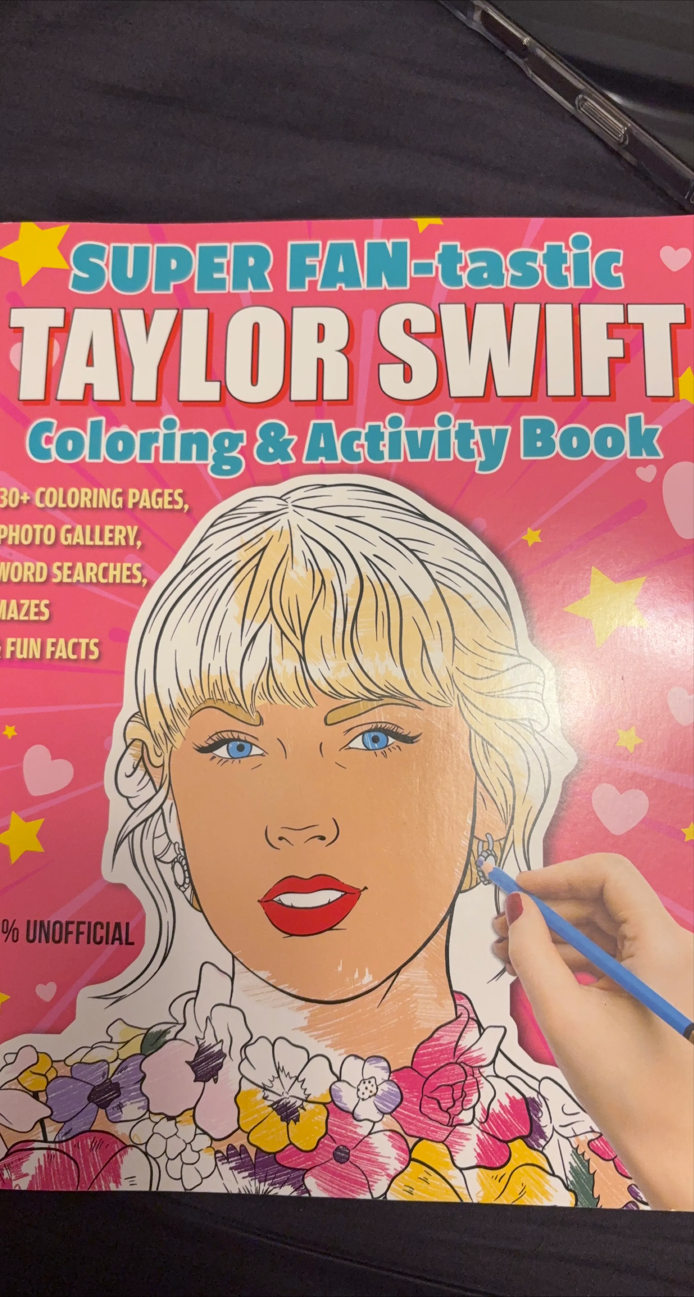 Selling a Taylor Swift 'Super Fan-tastic' Coloring & Activity Book! It features 30+ coloring pages, a photo gallery, word searches, mazes, and fun facts. Perfect for any Swiftie looking for some creative fun