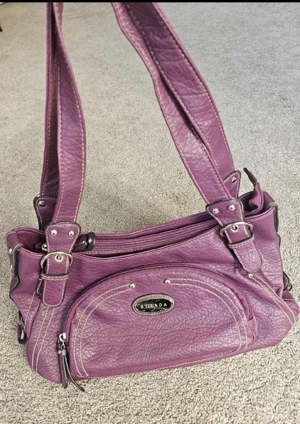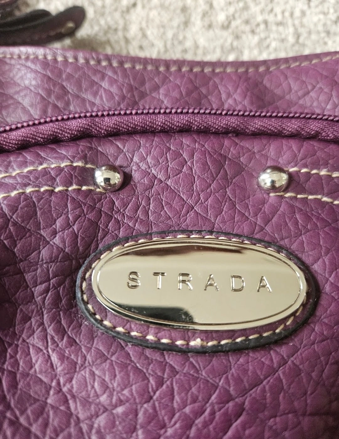 New Strada shoulder bag in a purple colour. Its sitting in my cupboard for the last 8 months and never been used. The approximate dimensions are 12 inches wide and 7 inches tall. Perfect for everyday use.