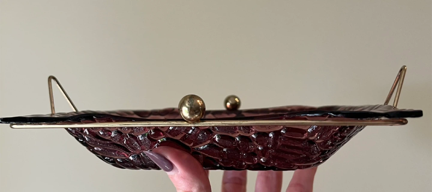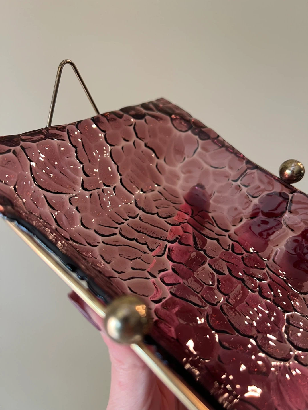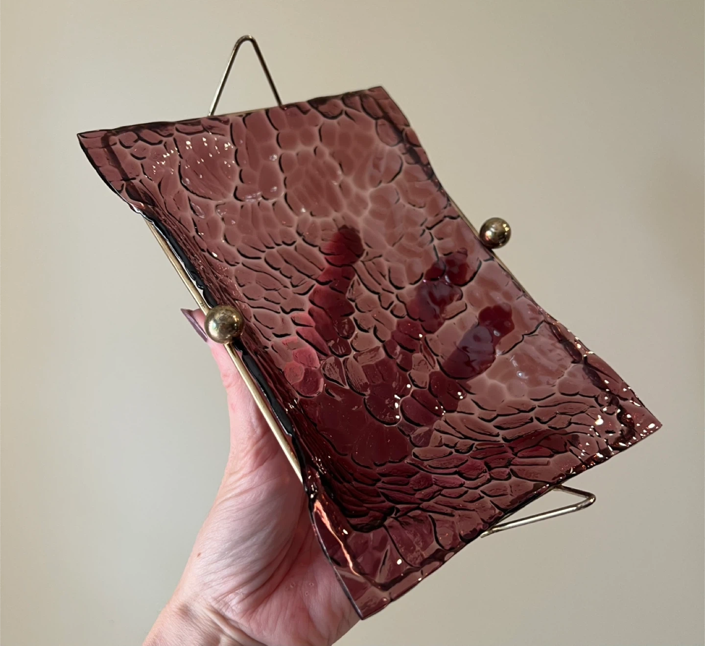 Textured glass and a brassy metal frame (affixed) Trinket?… Candy dish?… Serving tray?… Excellent condition 7.75” long and 5.75” wide Asking $10 Interested! Message me and please check my other listings…