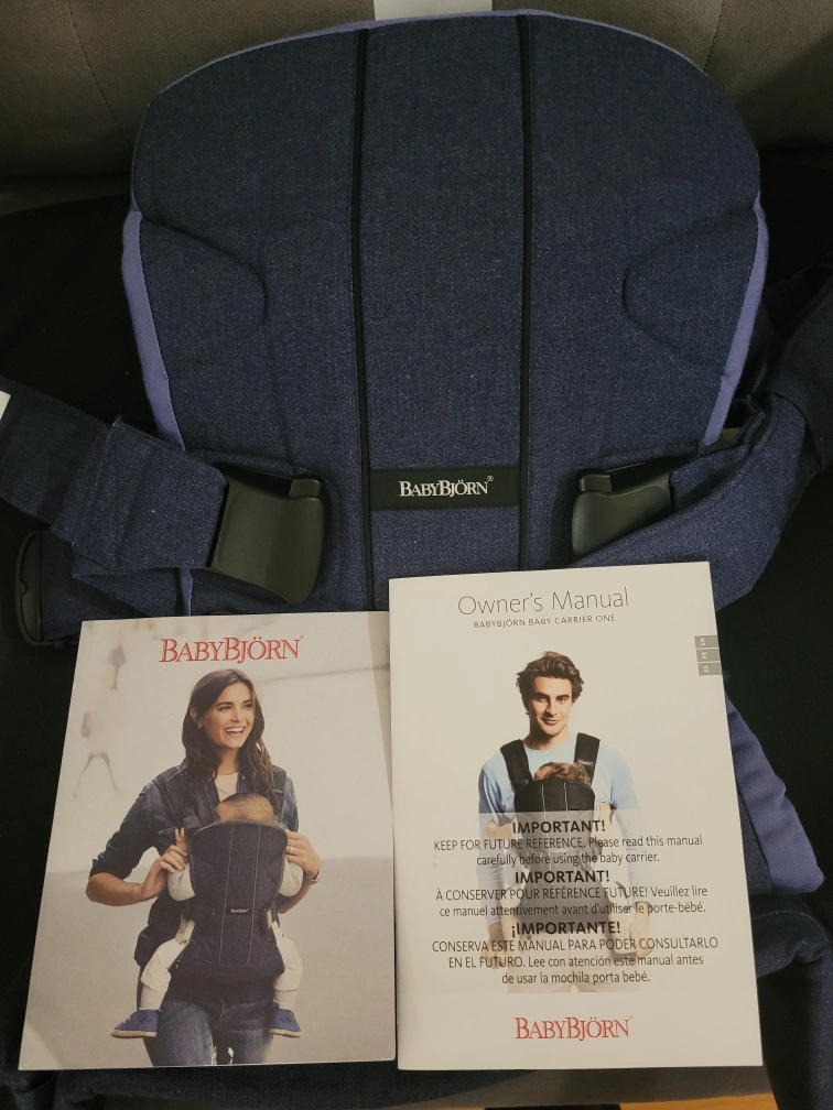 Selling a gently used BabyBjörn Baby Carrier One in denim blue! It's in great condition and comes with the owner's manual. This carrier is super comfy and easy to use for both you and your little one. Perfect for keeping your baby close while you're on the go!