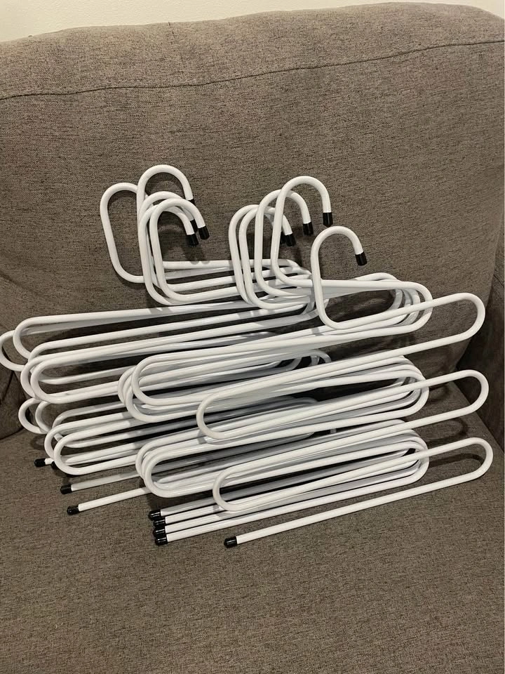 Save space and keep your closet organized with these practical hangers! Each hanger has 5 slots, perfect for pants, jeans, scarves, or towels. β Space-saving design β Curved shape for easy access β Durable and lightweight β Great for maximizing closet space π° Price is $1 each or all for $10 Available: 14 white + 1 black
