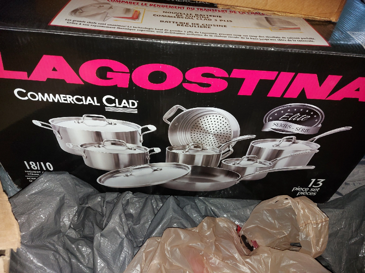 Selling a brand new Lagostina Commercial Clad 13-piece cookware set! This set is ready to elevate your cooking experience with its durable construction and even heat distribution. A great addition to any kitchen!