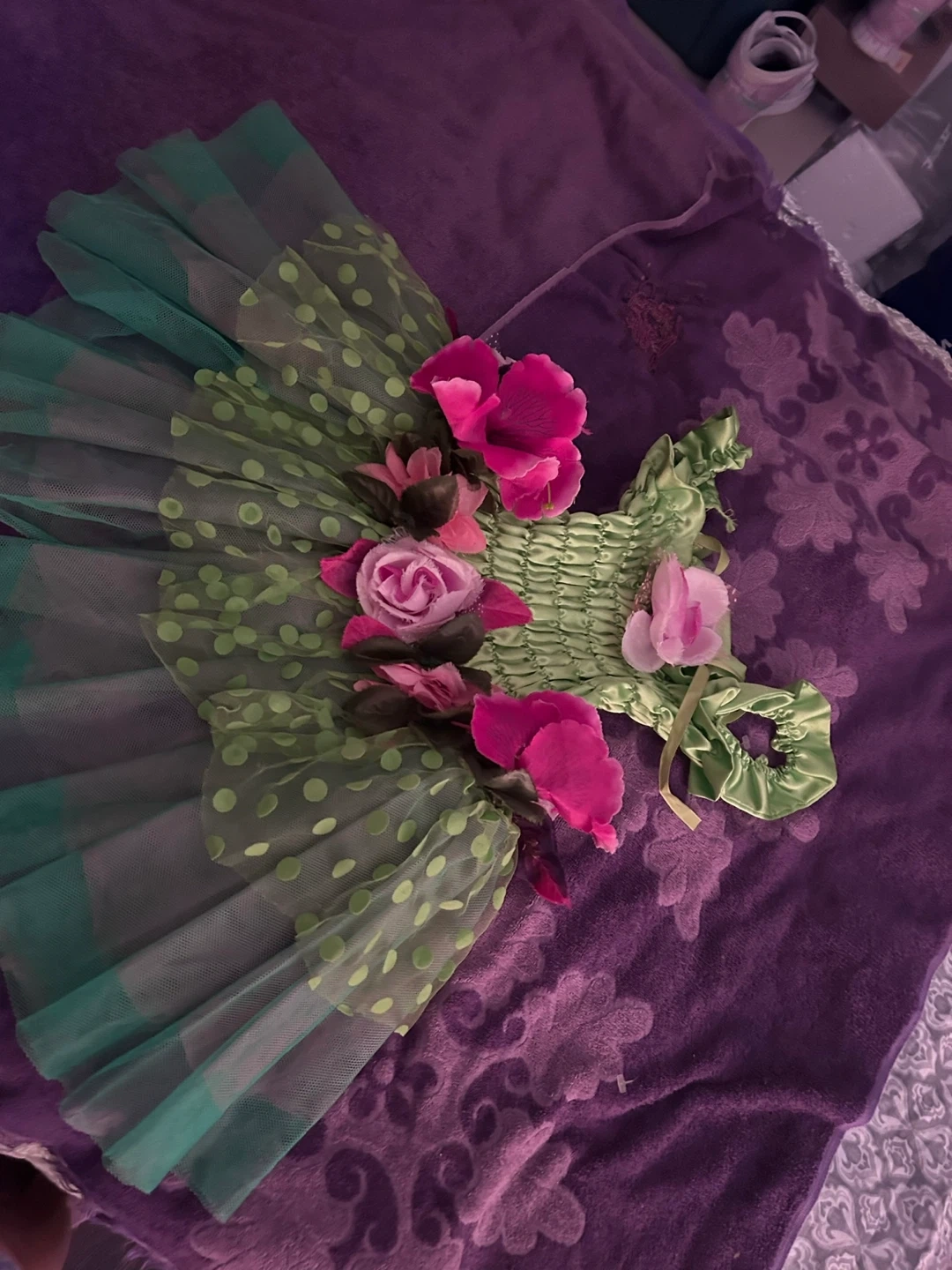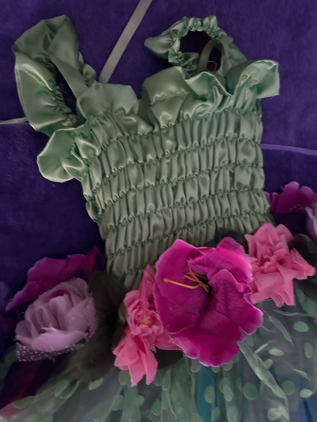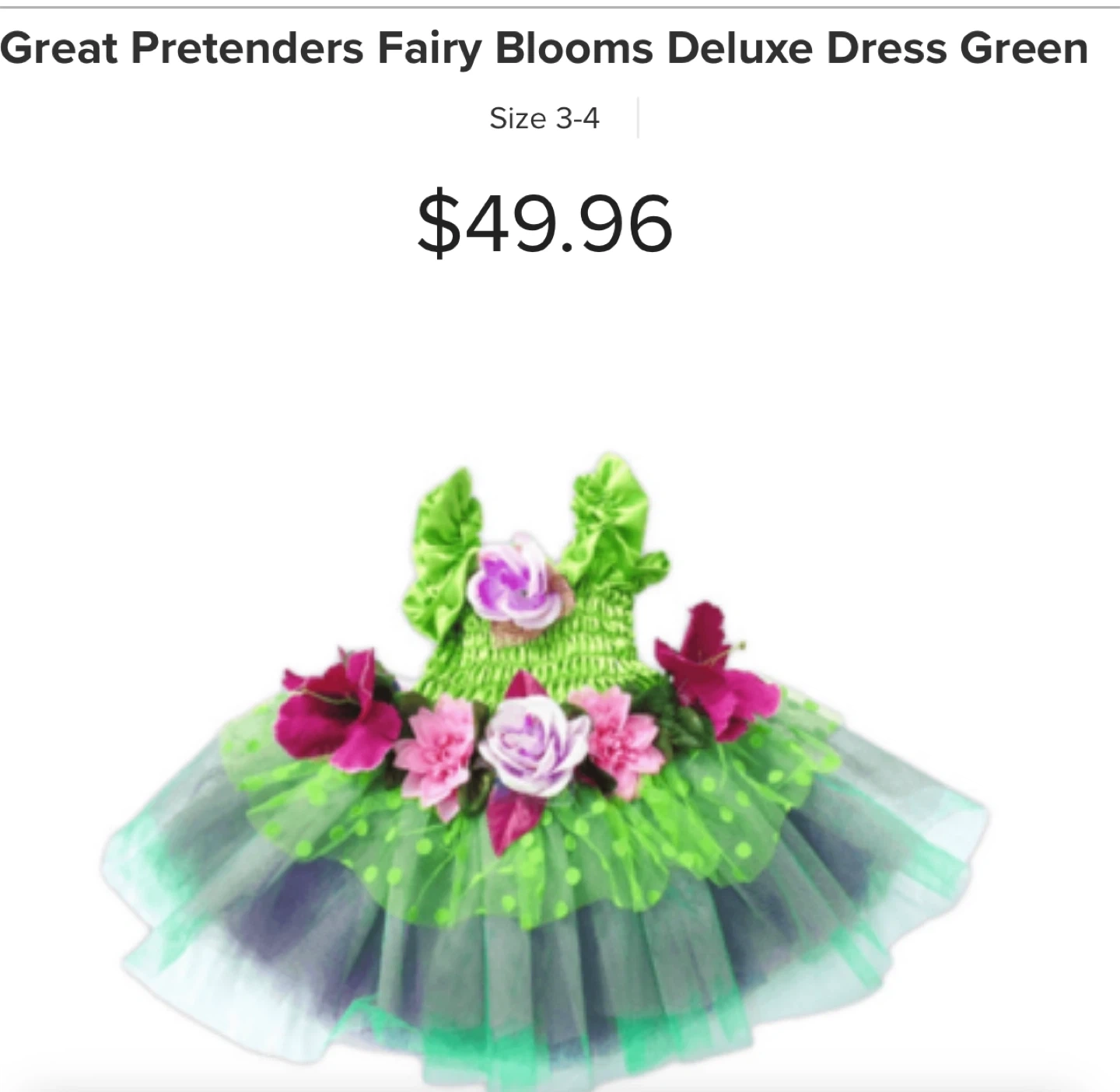 75This adorable fairy dress from Great Pretenders is perfect for your little one's dress-up adventures! It's a size 5-6 and features a lovely green bodice with colourful flower accents. The skirt has a fun polka dot pattern. Great for imaginative play!