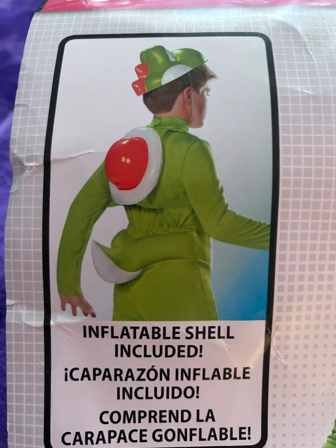 Selling a Yoshi Deluxe Child Costume! It's a size Large/Grande (10-12). The costume includes an inflatable shell. Perfect for dress-up or Halloween!