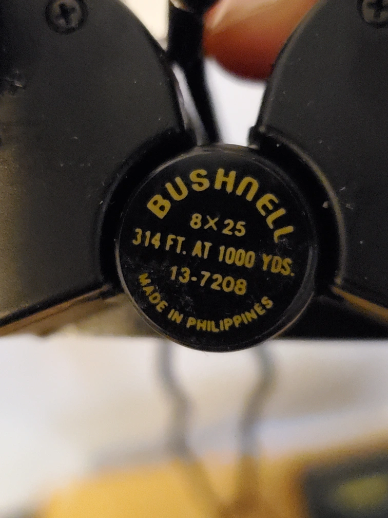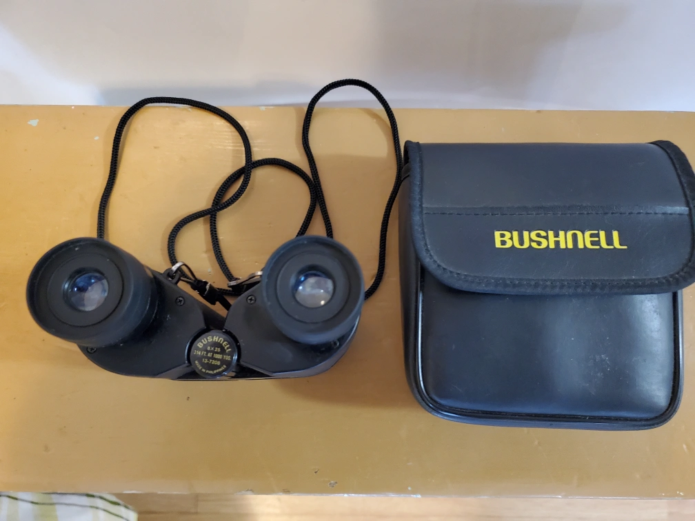 Selling a pair of Bushnell 8x25 binoculars. They come with their original case. These binoculars offer a clear view at 314 ft at 1000 yards, perfect for birdwatching or outdoor adventures. Model number is 13-7208.