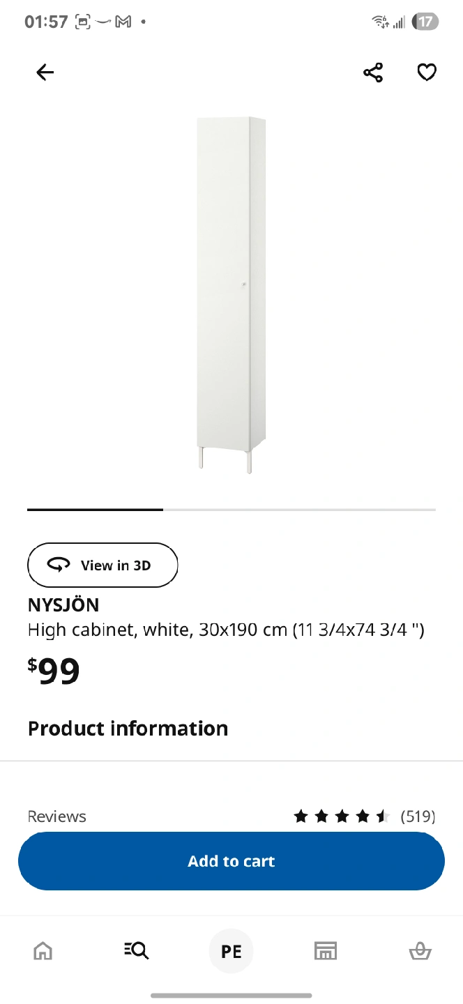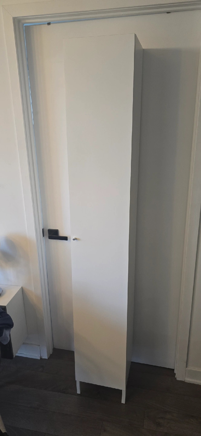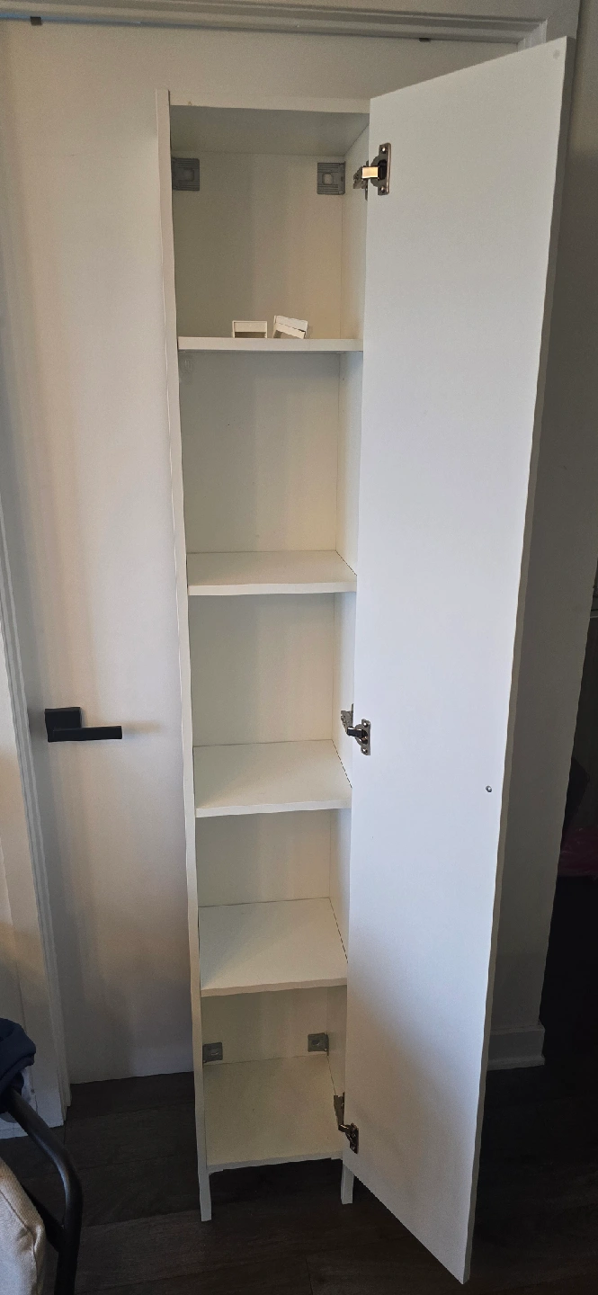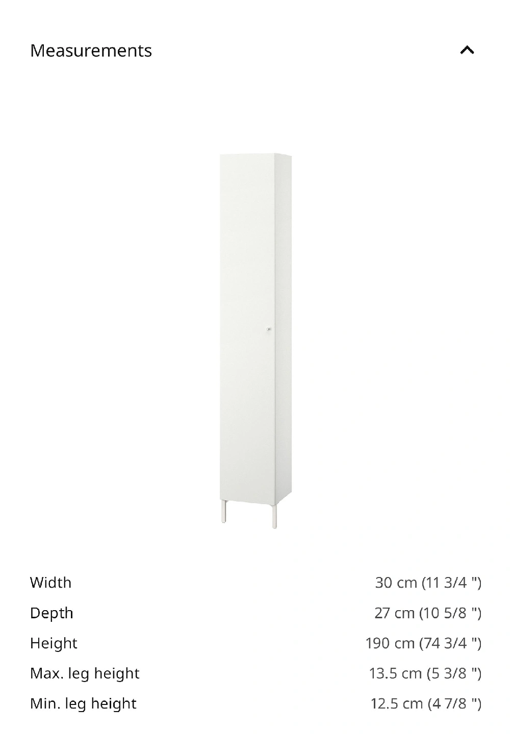 PICK UP DUNDAS AND REGENT PARK Selling a white IKEA NYSJÖN high cabinet! It's in great shape and ready to add some storage to your space Dimensions: - Width: 30 cm (11 3/4 ") - Depth: 27 cm (10 5/8 ") - Height: 190 cm (74 3/4 ") - Max leg height: 13.5 cm (5 3/8 ") - Min leg height: 12.5 cm (4 7/8 ") Originally bought for $99