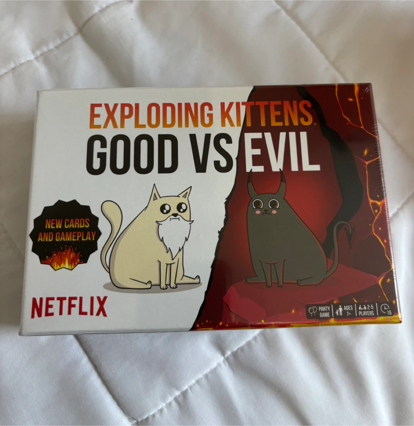 Selling a brand new, sealed Exploding Kittens: Good vs Evil card game! This is a party game for ages 7+, and can be played with 2-5 players. Brand New Sealed Cash and Pick up only