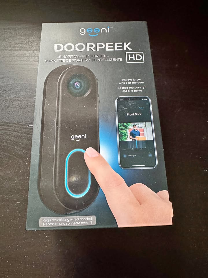 Peace of mind starts at home. Geeni DOORPEEK Smart Wired Doorbell with 1080p HD Camera always knows who is at your door. Keep watch outdoors, get alerts when there's movement at home, share access and see what's happening, even in the dark. Review high quality images and recorded videos. This system helps to provide safety and peace of mind, from anywhere. Compatible with Amazon Alexa and Google Assistant.