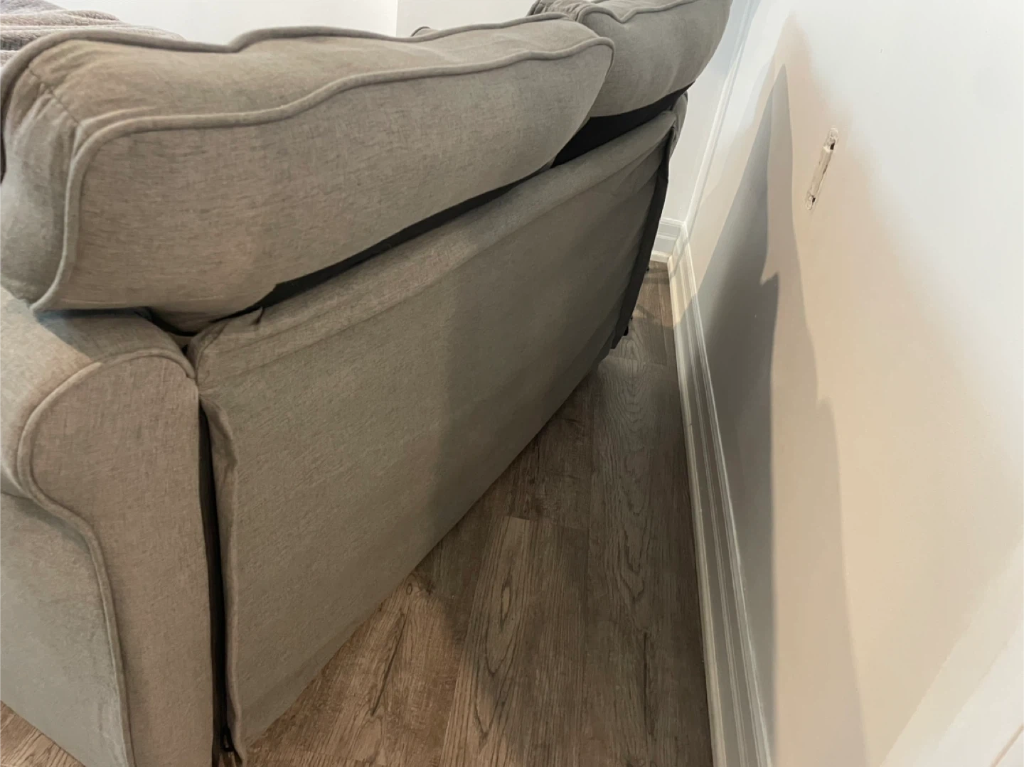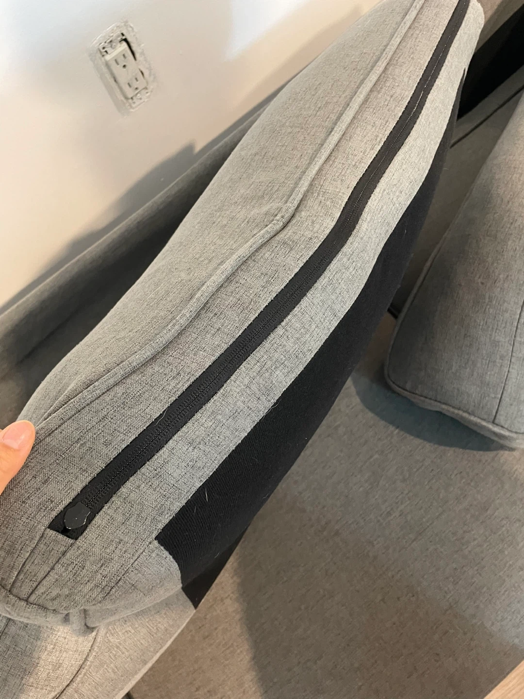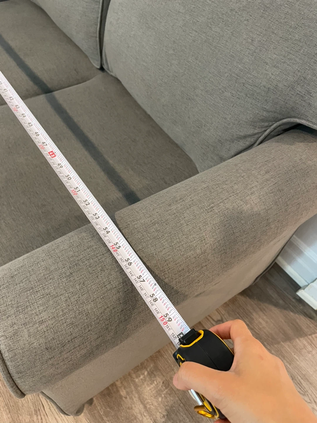 Selling a comfy grey loveseat! The height is approximately 35 inches and the width is about 59 inches. Perfect for a small space or apartment Everything can be separated and has zippers so you can wash it