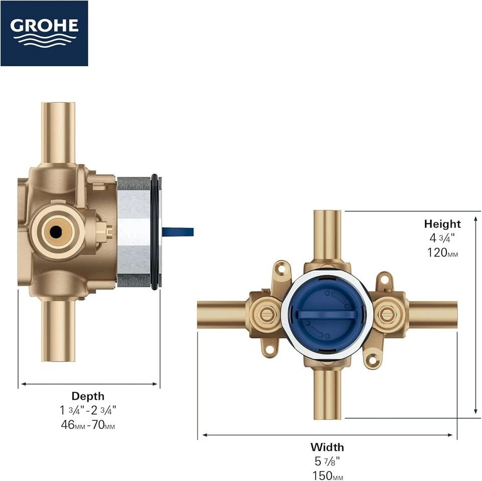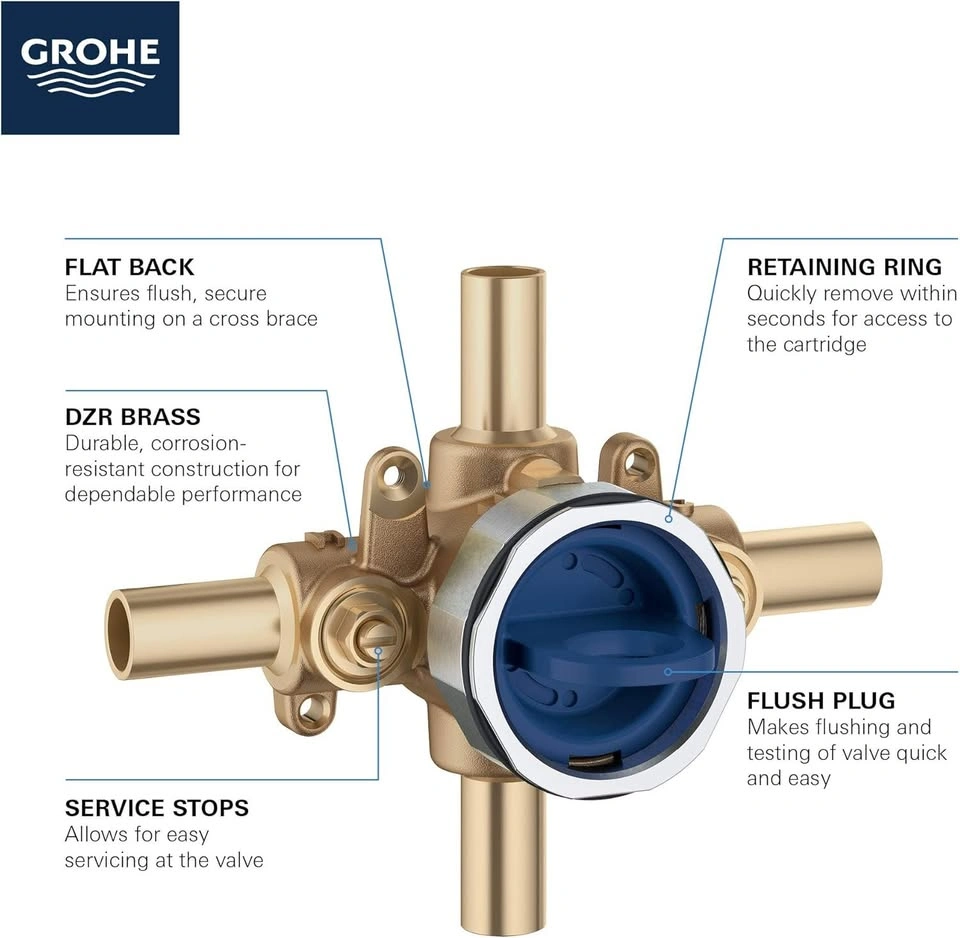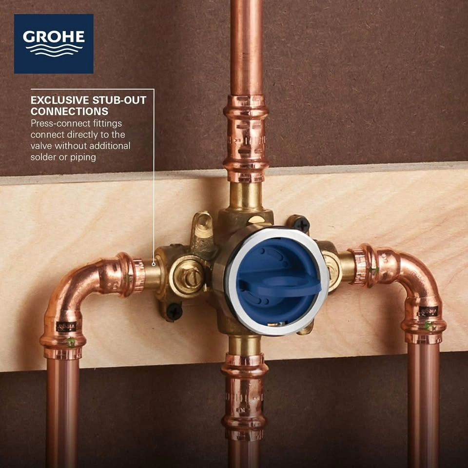 GROHE 35113000 GrohSafe 3.0 Pressure Balance Valve Rough with Flush Plug with Stub-Out Inlets/Outlets with Service Stops, Unfinished