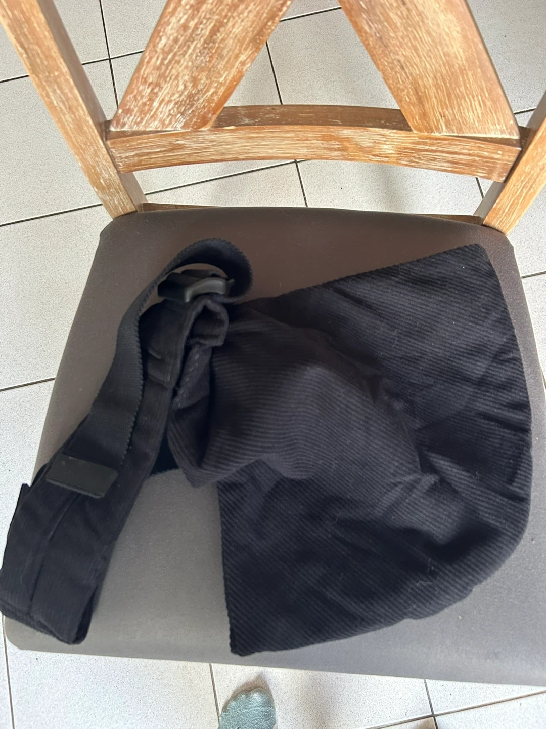 Selling a baby sling carrier in black, suitable for carrying babies weighing 10-30 lbs! This sling is designed to be anti-slip and portable, making it easy to carry your little one. New without packaging Pickup keele and major Mackenzie Black corduroy design