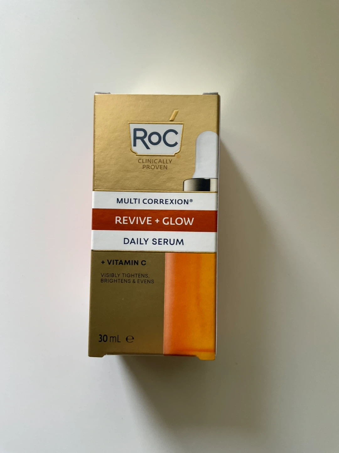 I'm selling a RoC Multi Correxion Revive + Glow Daily Serum. It's a Vitamin C serum that visibly tightens, brightens, and evens skin tone. Size is 30ml. Brand new, in box!