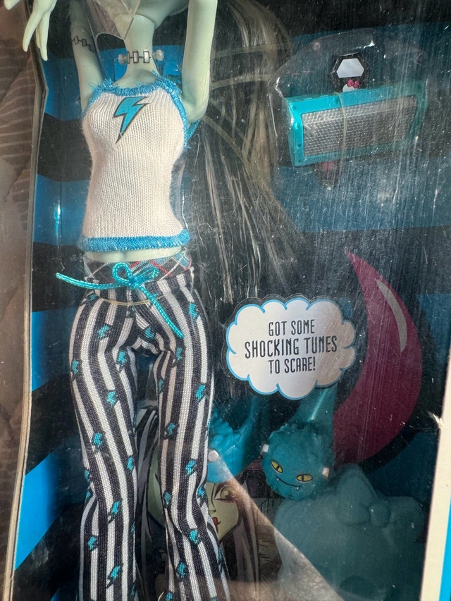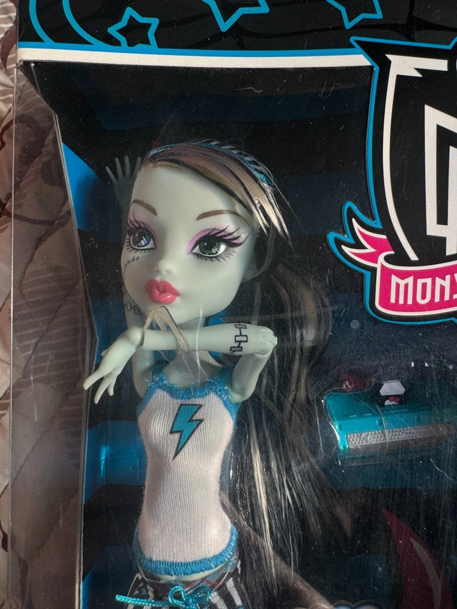 Selling a Monster High Dead Tired Frankie Stein doll, model #V7972, still new in box, never been opened! The doll comes with all original accessories. This is a great addition for any Monster High collector! This doll was made in 2011. * Character: Frankie Stein * Series: Dead Tired * Model Number: V7972