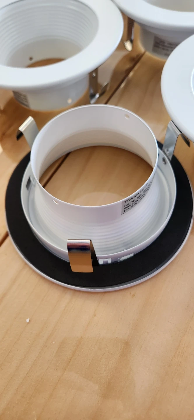 Set of recessed lighting trim fixtures. Model number X01RLT-4WHT supports up to 50W, 120V. White colour finish. These are for indoor use. Pack of 6