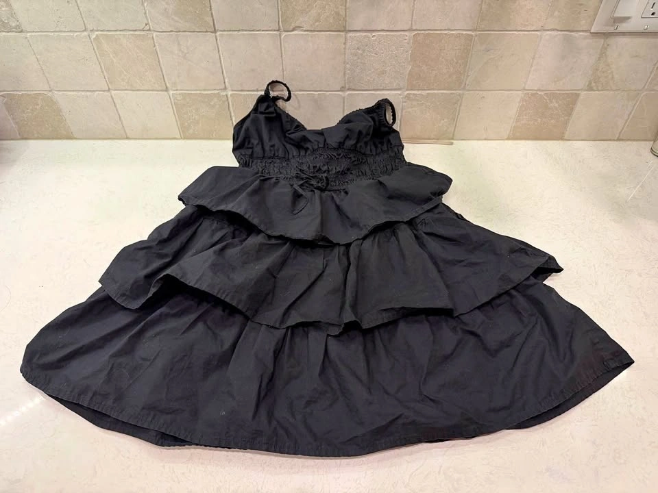 Wilfred by Aritzia black tiered mini skirt. Lightweight fabric with a soft, flowy silhouette and elastic waistband with drawstring for a comfortable fit. Easy to dress up or down—perfect for casual wear, summer outfits, or layering.
