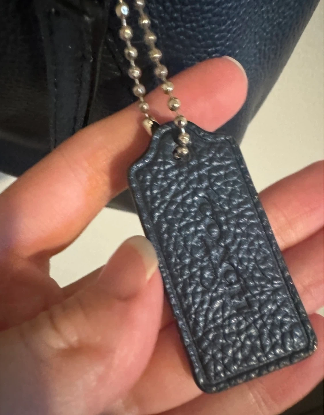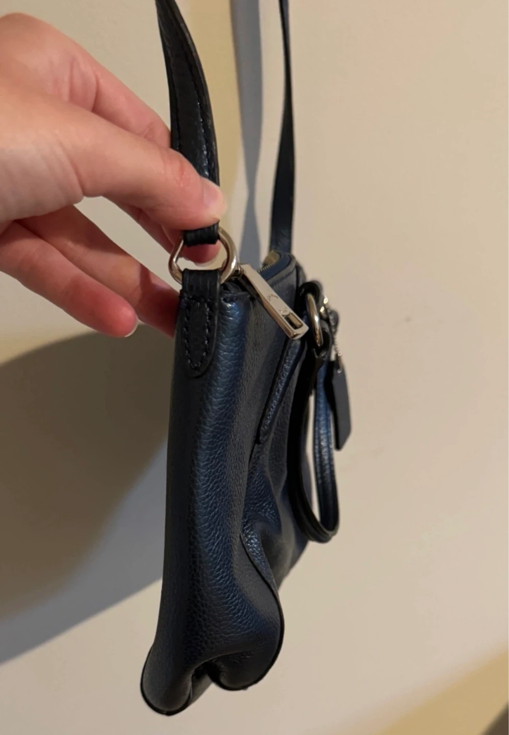Coach Pebbled Leather Metallic Navy Blue Crossbody Bag
