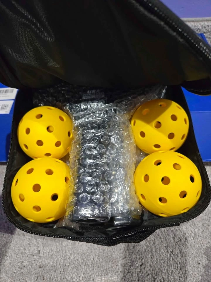 Complete pickleball paddle set includes 2 premium fiberglass paddles, 4 professional pickleballs, and 1 portable carrying bag. USAPA approved paddles with durable fiberglass surface and responsive graphite polymer core for balanced power and control. Ergonomic, non-slip padded grip reduces vibration and ensures comfortable handling during long matches. Reinforced edge guard for added durability, plus lightweight carrying bag for easy storage and transport. Suitable for beginners and experienced players alike, offering great balance, maneuverability, and performance for all ages. Retails for $110 + tax on Amazon. Pickup near Dixie & Kingston Rd, Pickering. See my other listings and bundle up for extra savings!
