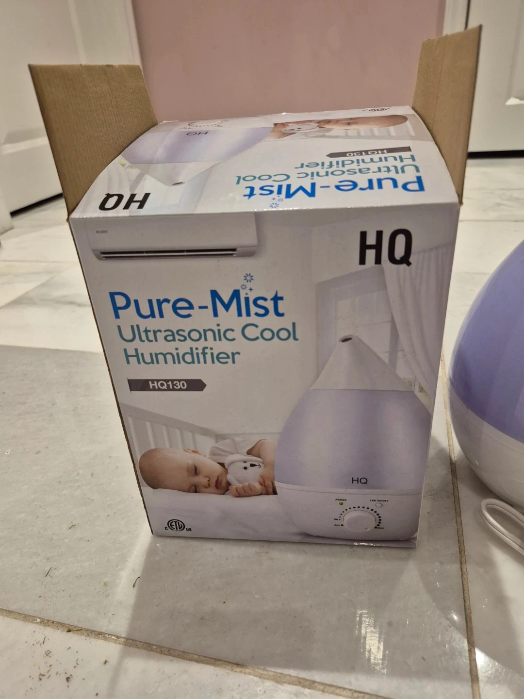 This is an HQ Pure-Mist ultrasonic cool humidifier. It's the HQ130 model. It has a dial for power and LED on/off control. Great for creating a comfortable atmosphere!
