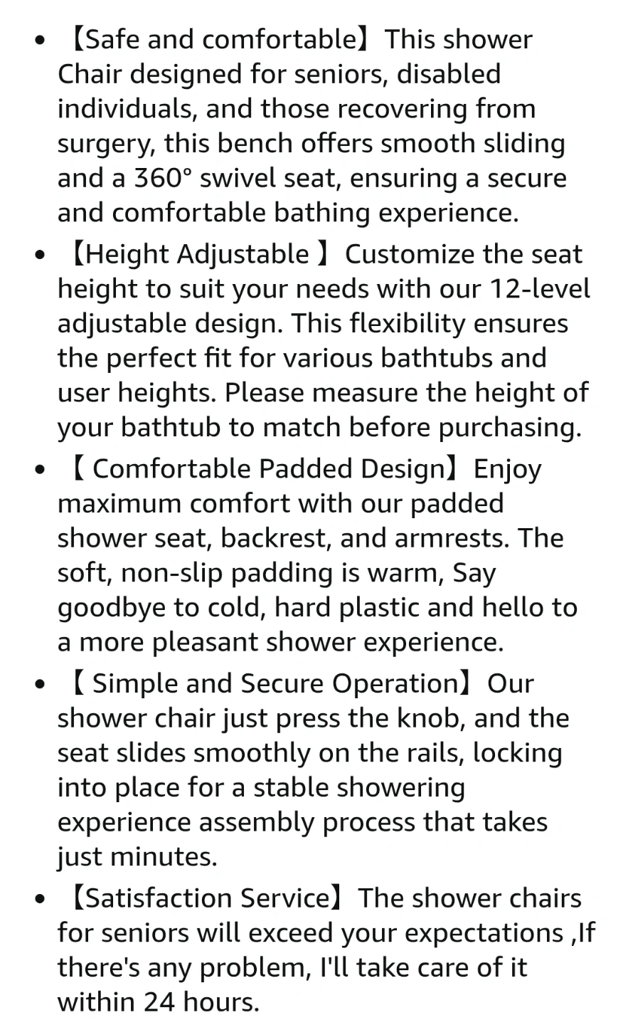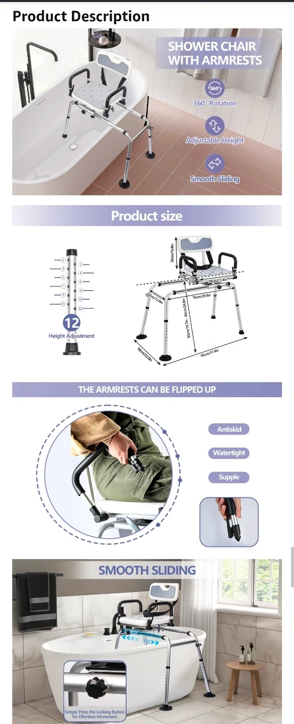 This shower chair is designed for seniors, disabled individuals, and those recovering from surgery. It offers smooth sliding and a 360Β° swivel seat, ensuring a secure and comfortable bathing experience. ππ