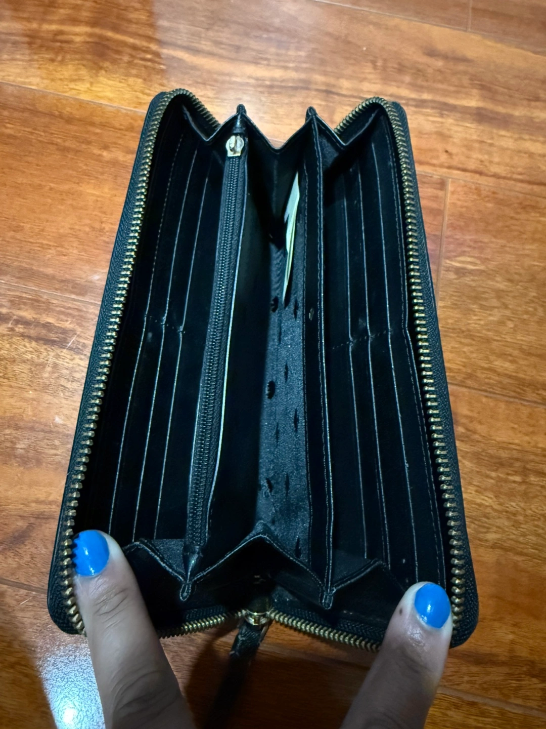 Very good condition Kate Spade leather wallet. Large size so it holds a ton of cards and has spaces for cash and coins as well.