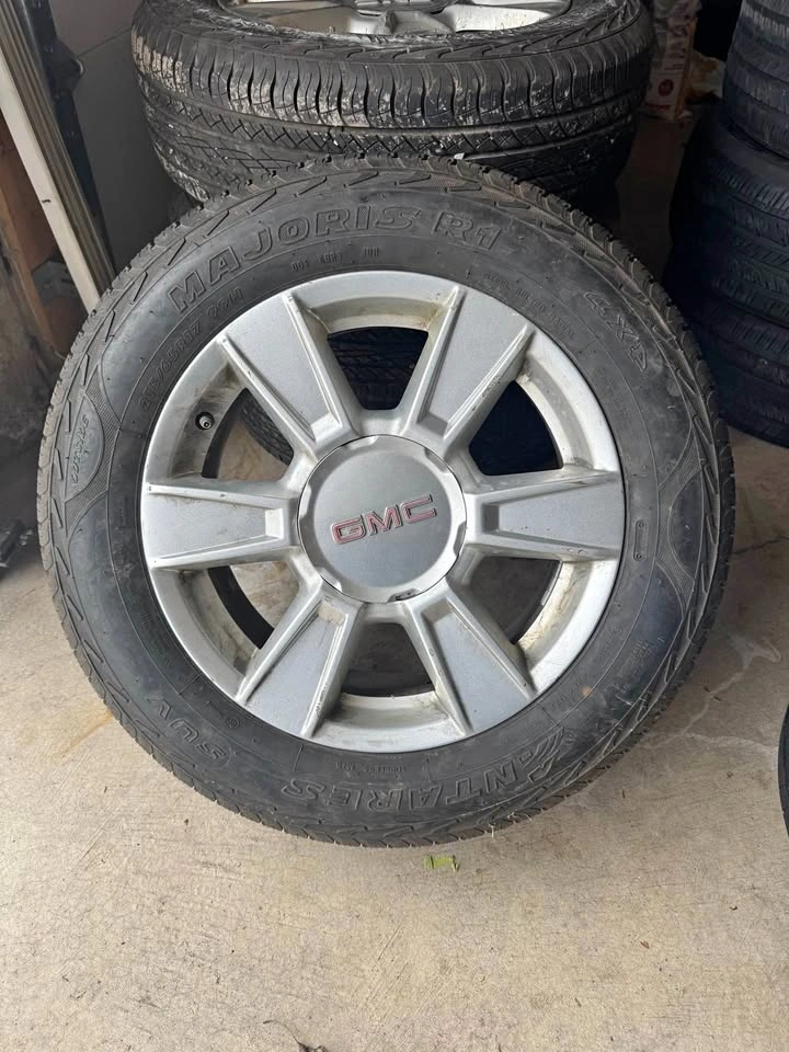 4 OEM GMC Terrain alloy rims with all-season tires (215/65R17). Rims are in great shape, just a little dirty in the pictures. Tires have ~9.5/32 tread (~95% life left), basically near new, good for 4-5 seasons. DOT 2023. No cracks, no leaks, no issues. Clean and ready to install. Fits GMC Terrain, Chevy Equinox, and other SUVs with the same bolt pattern. $445, a little flexible.
