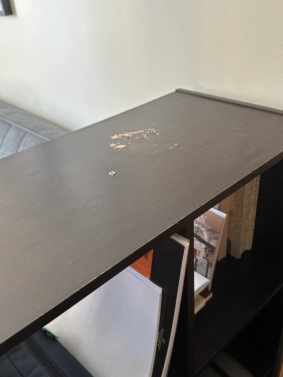 Condition: Fair condition. It has visible cosmetic wear/peeling on the top surface (see photos) and is a bit wobbly (might need tightening or corner braces).