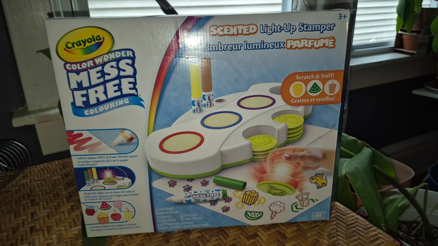 Crayola Color Wonder Mess Free Scented Light-Up Stamper. It magically lights up to show ink colour and includes scented markers and stamps. Includes 12 blank pages and 10 themed stamps.NOTE Needs new pads
