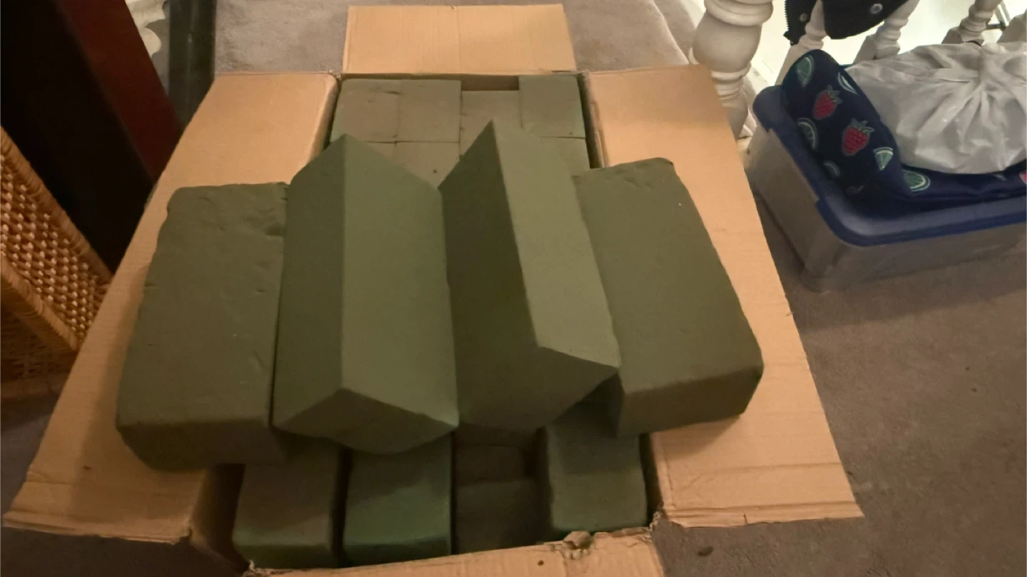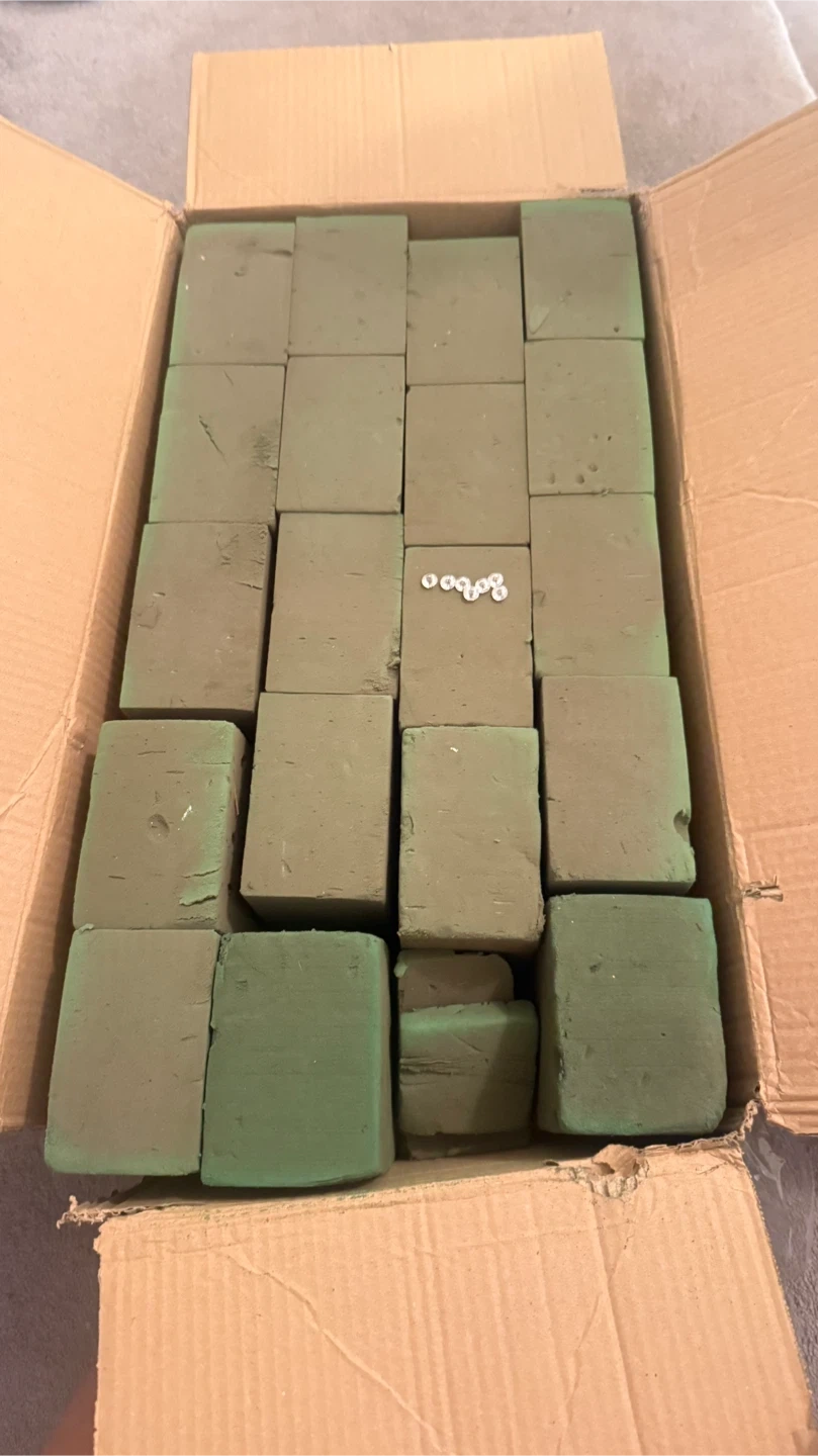 Selling a box of green floral foam blocks! These are great for creating floral arrangements.