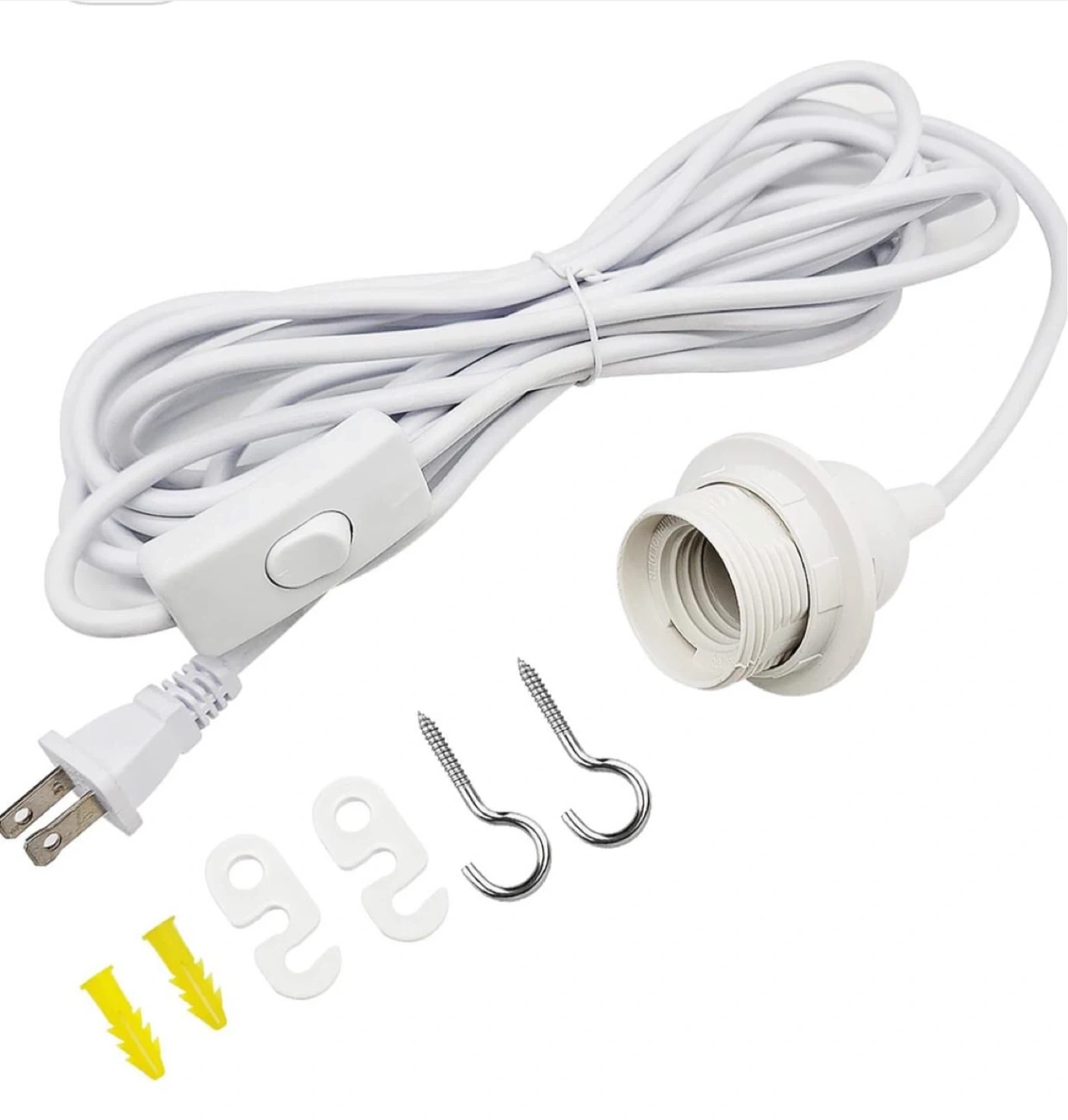 Selling a pendant light cord with a cable lamp holder. It's in great condition and ready to brighten up any space. Includes a one-key switch and a US standard plug for easy use. Comes with mounting hardware too