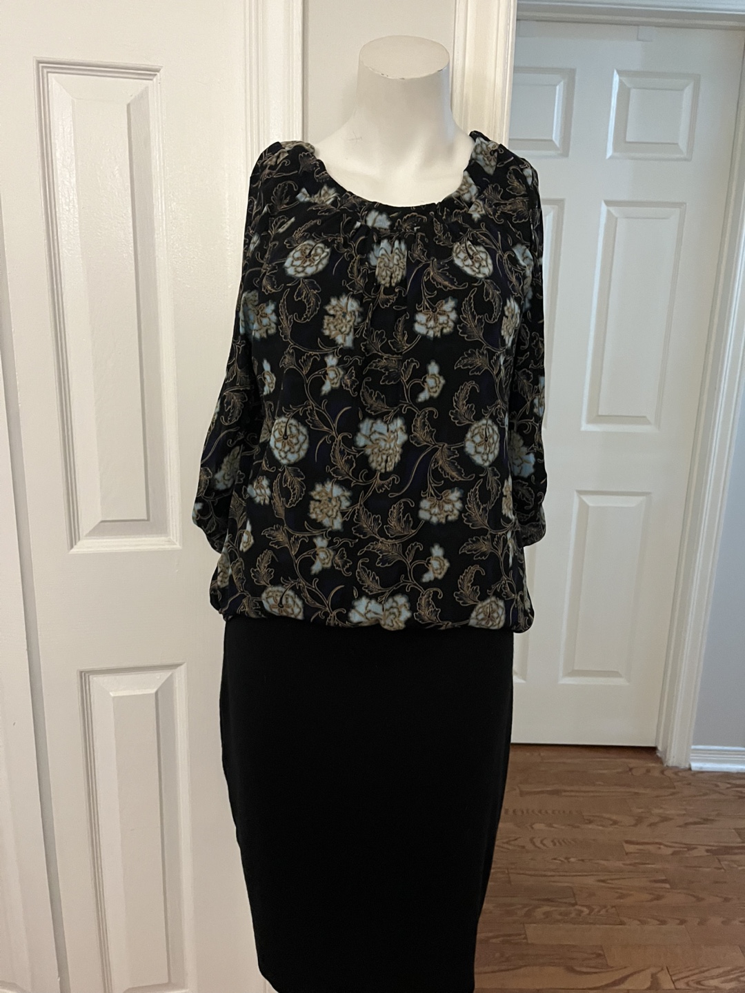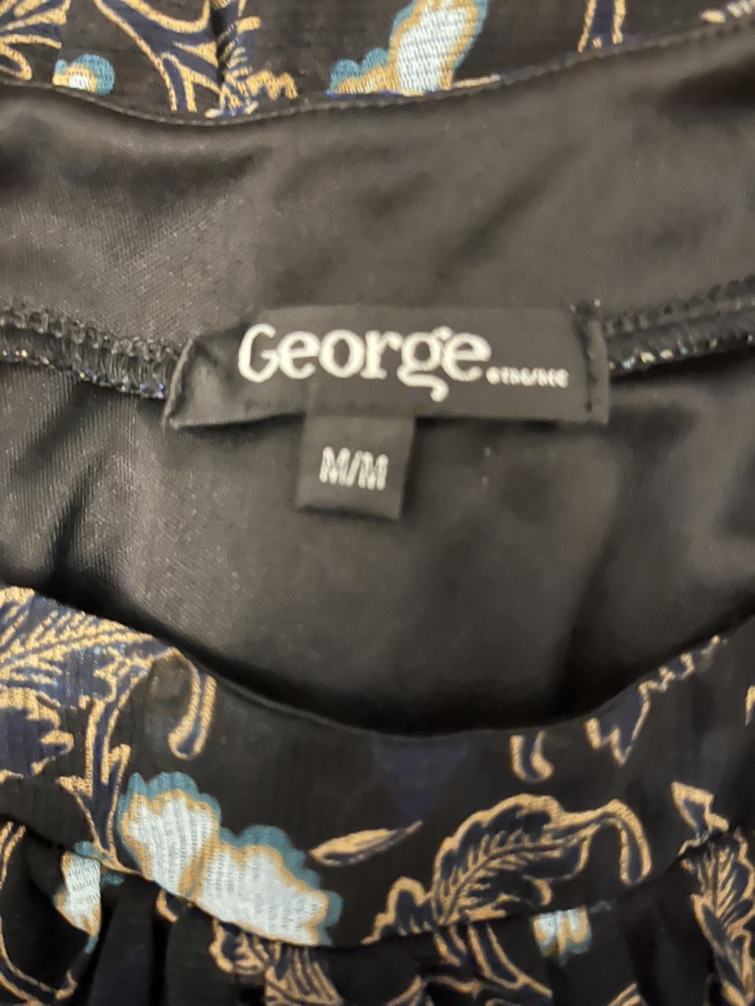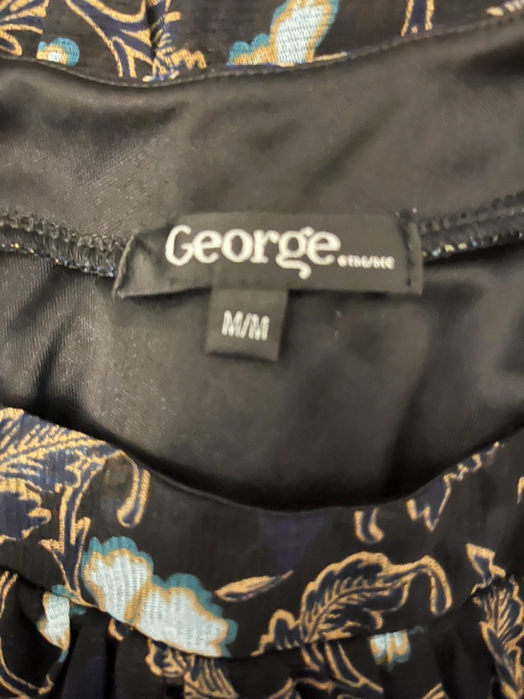 A lovely floral blouse from George in size medium! The top features a beautiful floral pattern in blues and browns on a black background. It has 3/4 length sleeves and a comfortable fit. Perfect for adding a touch of elegance to your wardrobe!