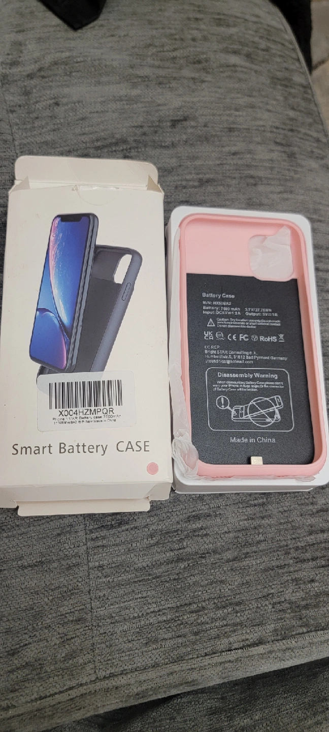 Selling a pink smart battery case for the iPhone 11/XR. The box is included. It's compatible with iPhone 11/XR and has a 7500mAh battery capacity