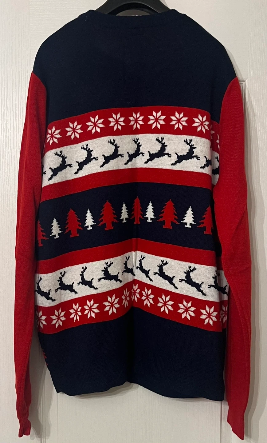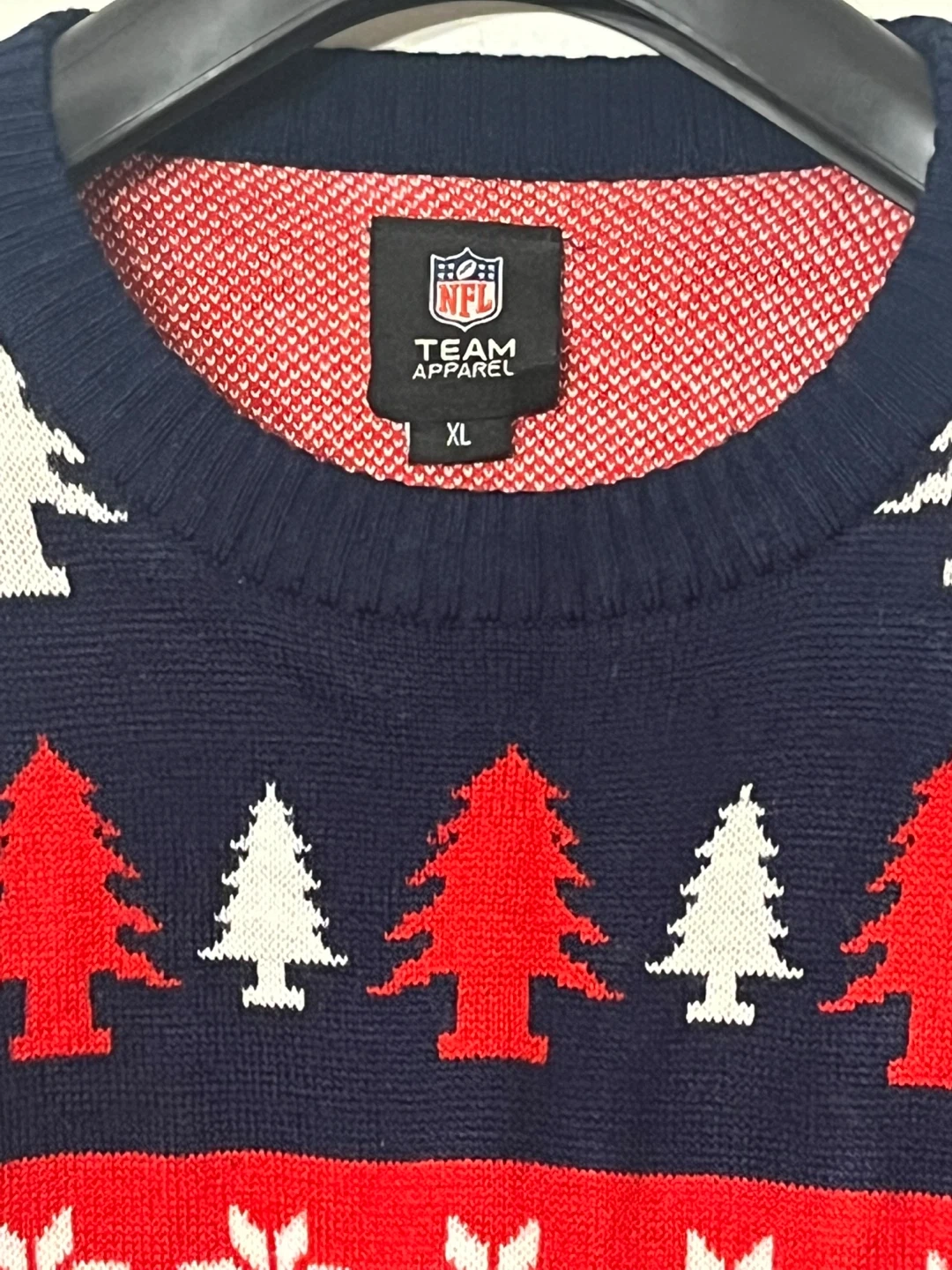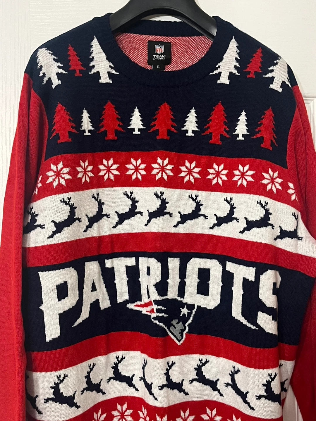 Get ready for the holidays with this festive NFL Team Apparel New England Patriots Christmas sweater! It's a Men’s size XL and features a fun design with reindeers, snowflakes, and Christmas trees in the team's colours. Perfect for showing your team spirit.