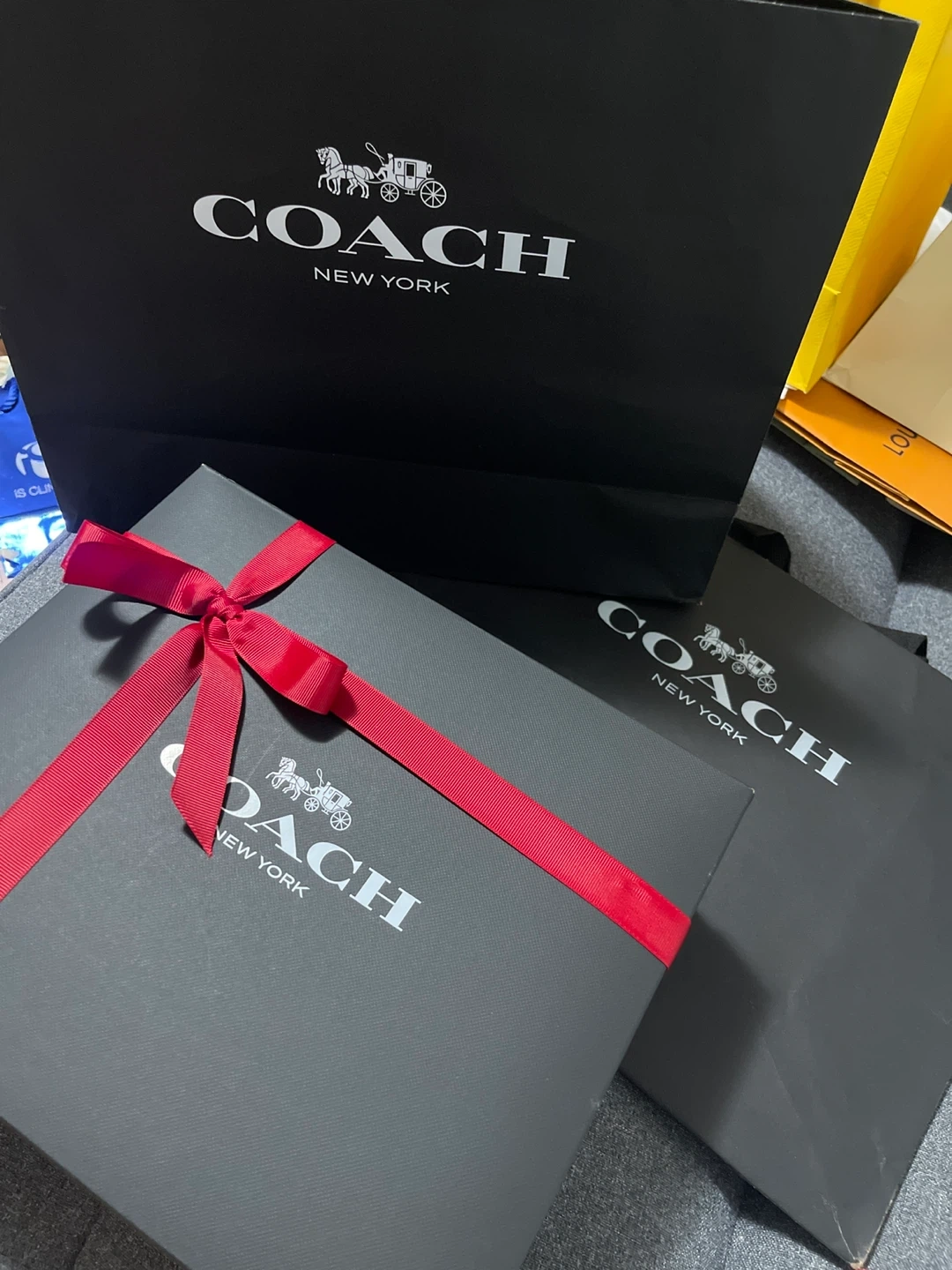 Selling a Coach gift box and shopping bag. Perfect for gifting or storing your Coach items. The box is in excellent condition and comes with a red ribbon.