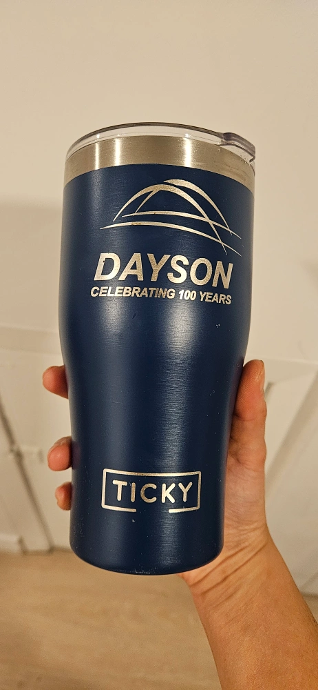 Dayson tumbler, celebrating 100 years! It's a stylish and practical way to keep your drinks at the perfect temperature on the go