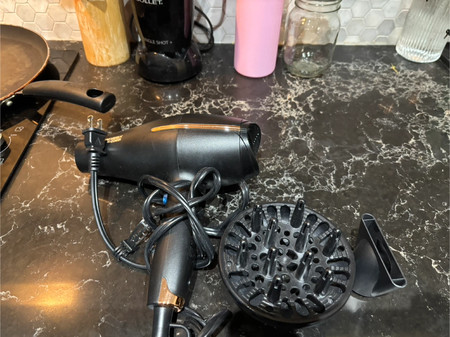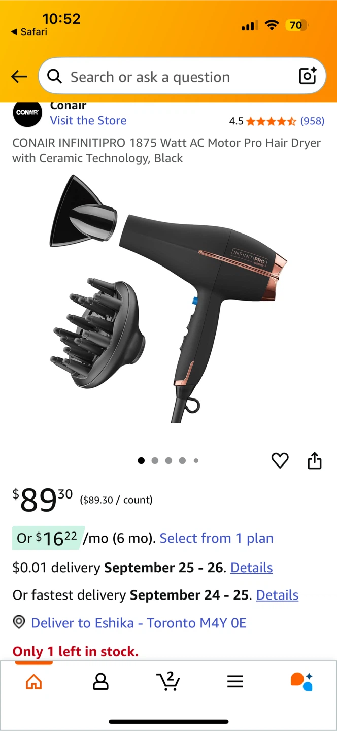 Selling a Conair Hair Dryer in black. It comes with the diffuser and concentrator attachments. Retails for $89.30!