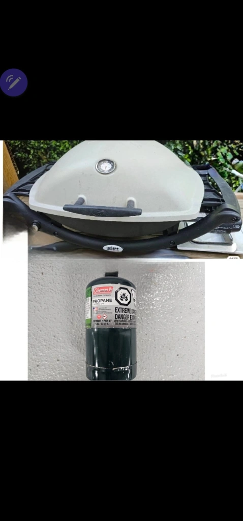 Selling a Weber grill along with 5 Coleman propane cylinders. The grill is perfect for small spaces and easy to transport. The propane tank is ready to fuel your next BBQ!