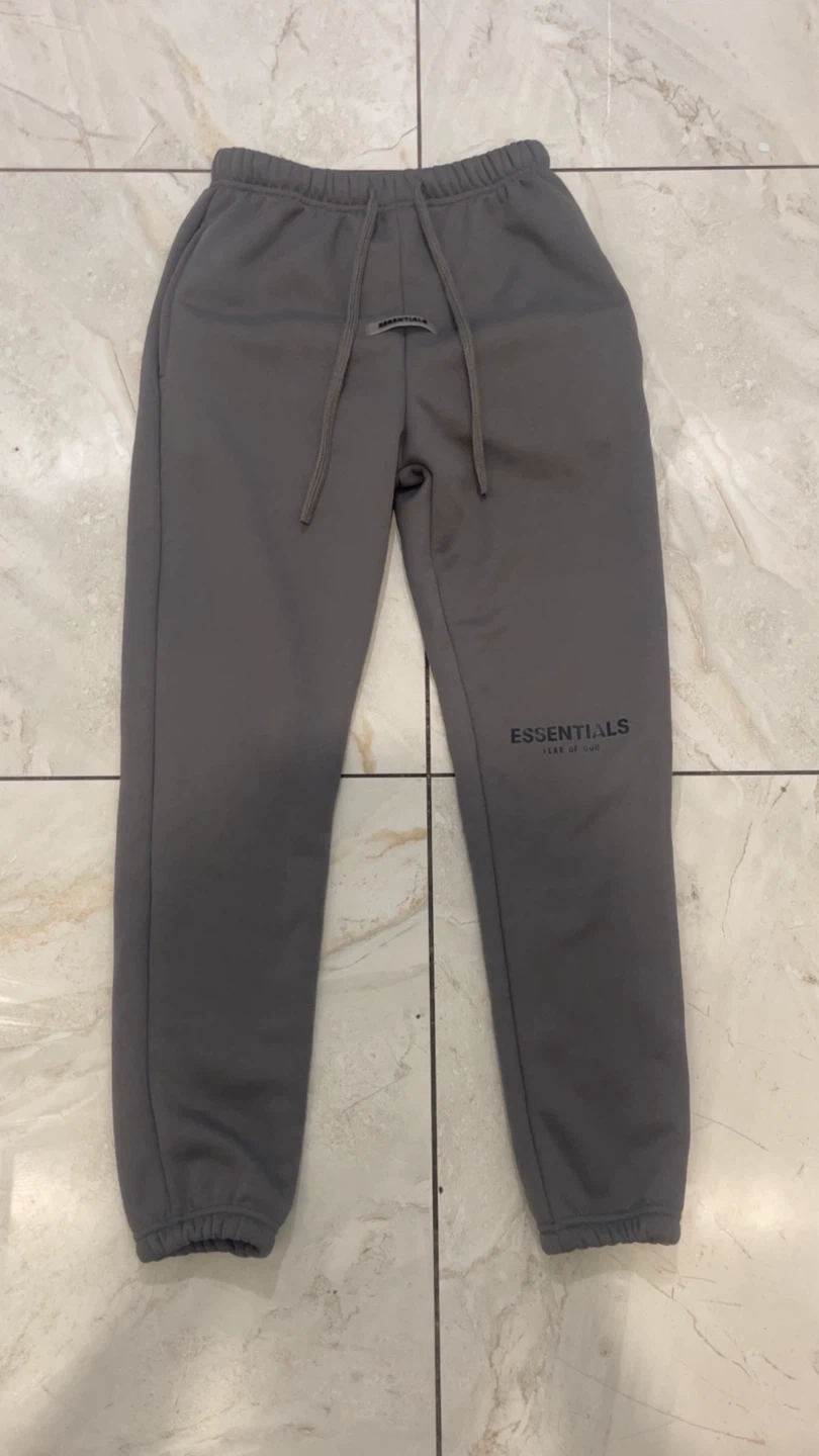 25Selling a pair of Essentials Fear of God sweatpants in grey. They are in great condition and come with the original packaging! Size medium fits like small