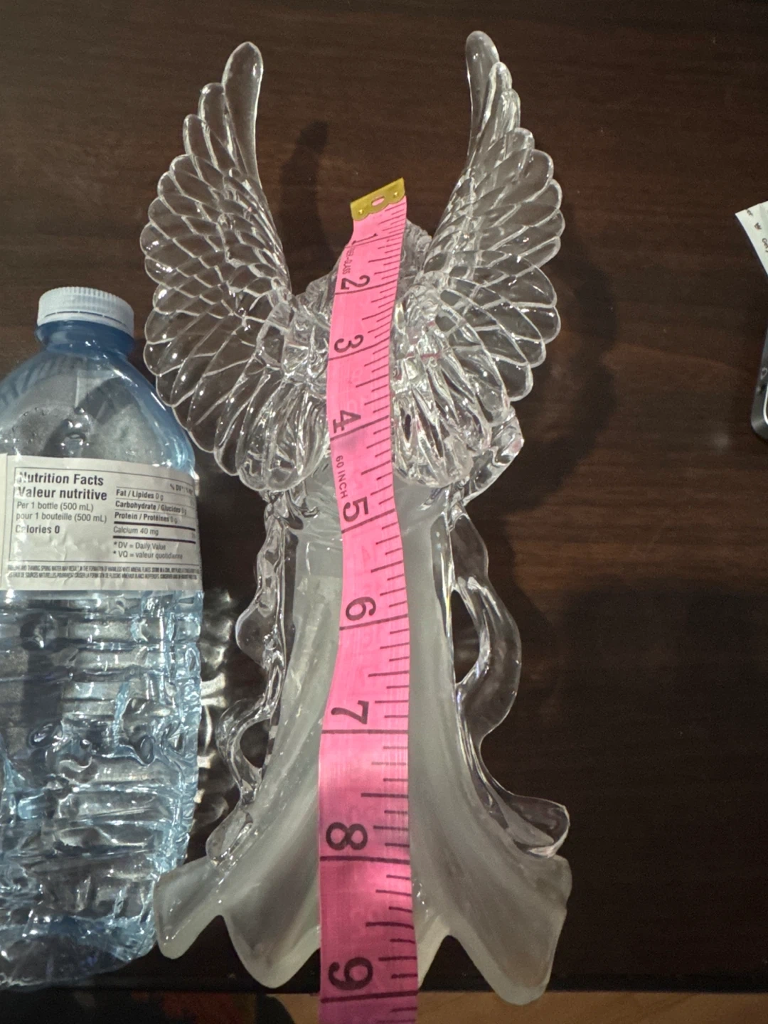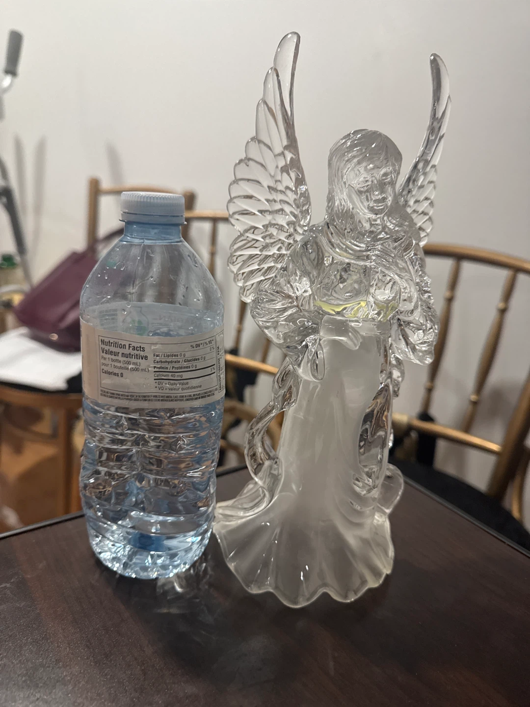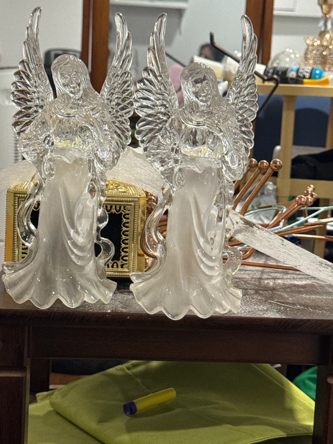 Selling a pair of lovely angel figurines! They are made of clear glass and would look great on a shelf or mantelpiece