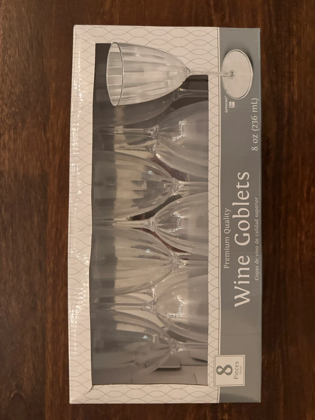 Selling a set of Amscan Premium Quality Wine Goblets! This set includes 7 pieces, perfect for gatherings or everyday use. Each goblet holds 7 oz (236 mL). The goblets are in excellent condition and come in their original box