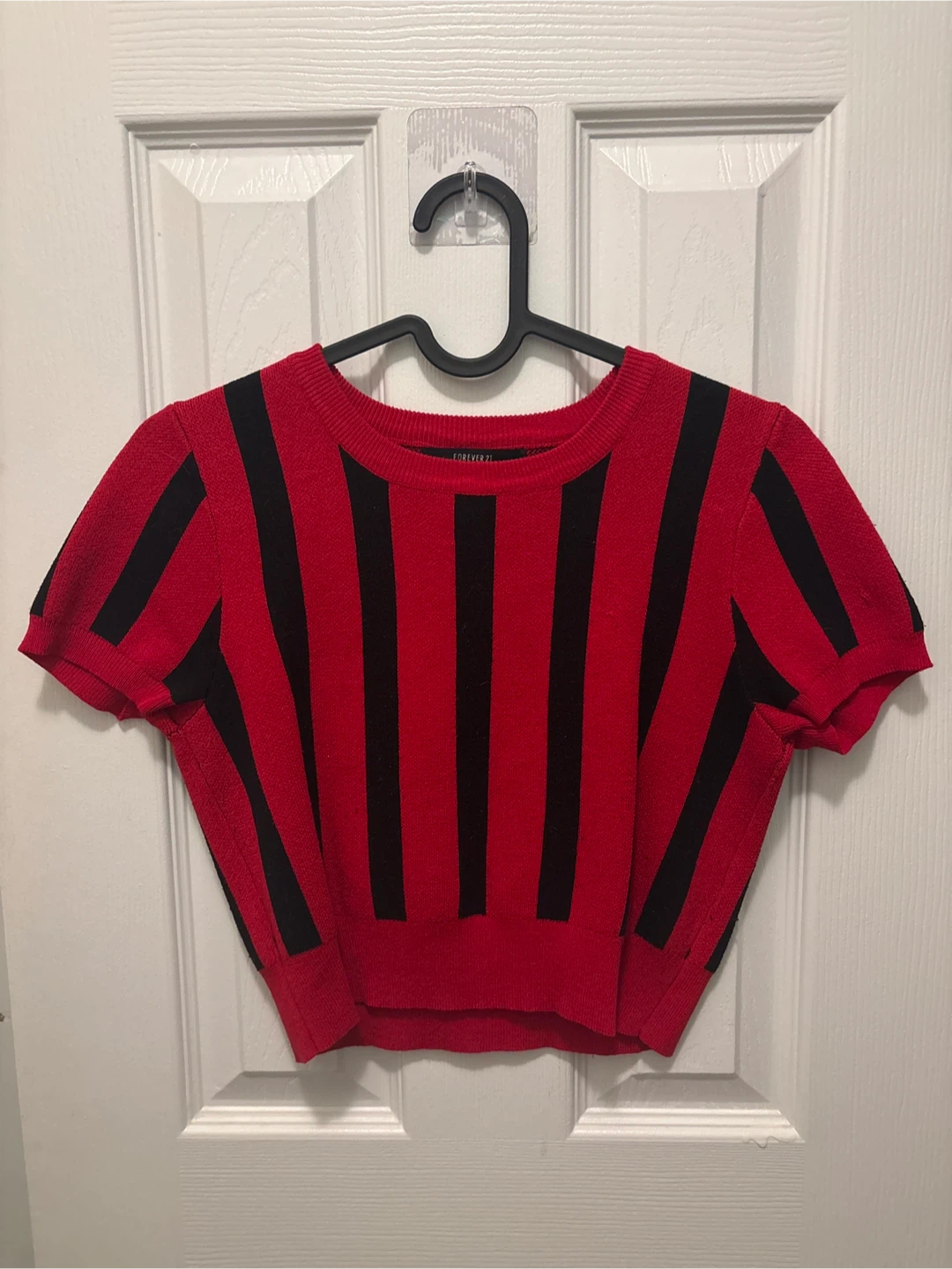 Selling a cute Forever 21 top! It's a size small and features a bold red and black striped pattern. Perfect for adding a pop of colour to your wardrobe!
