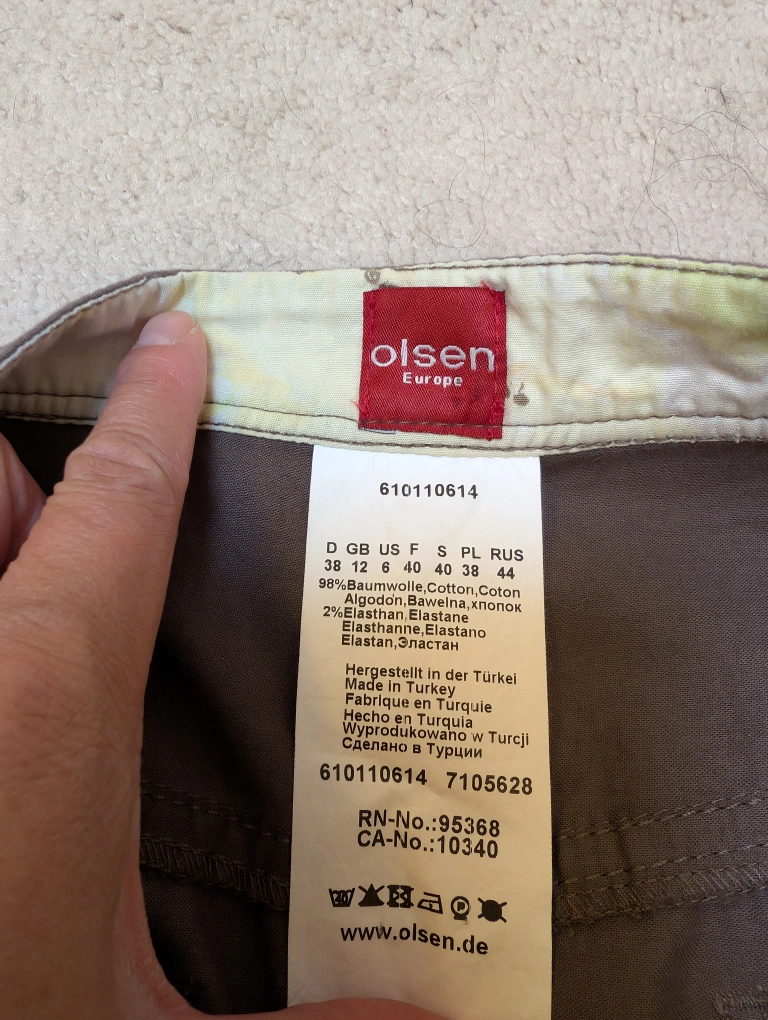 Here's a gently used skirt from Olsen Europe! It's a size 6 and made from 98% cotton and 2% elastane, making it comfy and durable. The skirt has a stylish design with decorative trim. Perfect for adding a touch of elegance to your wardrobe! Porch Pick up Ajax Church and Delaney Please see My profile for more items