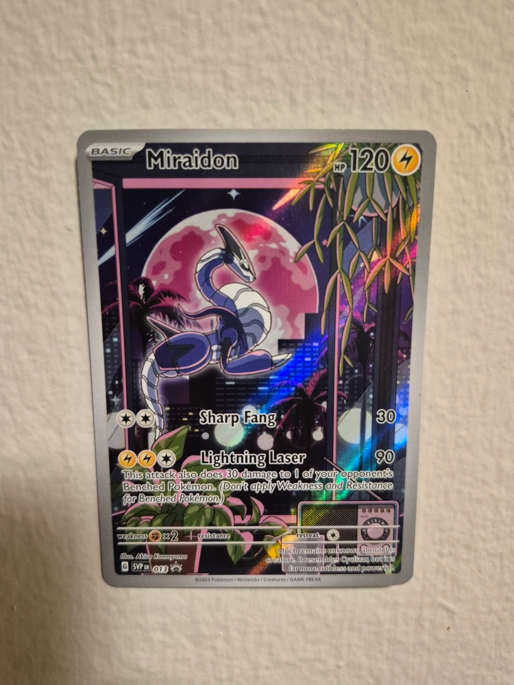 75Selling a Miraidon Pokémon card! It's in great condition and ready for a new home. Perfect for collectors or players alike