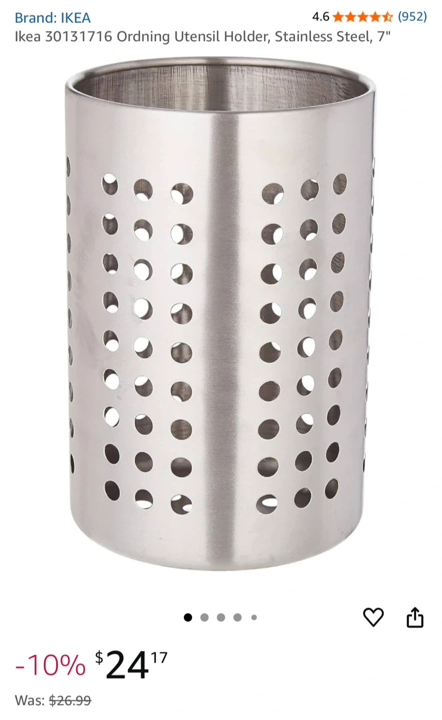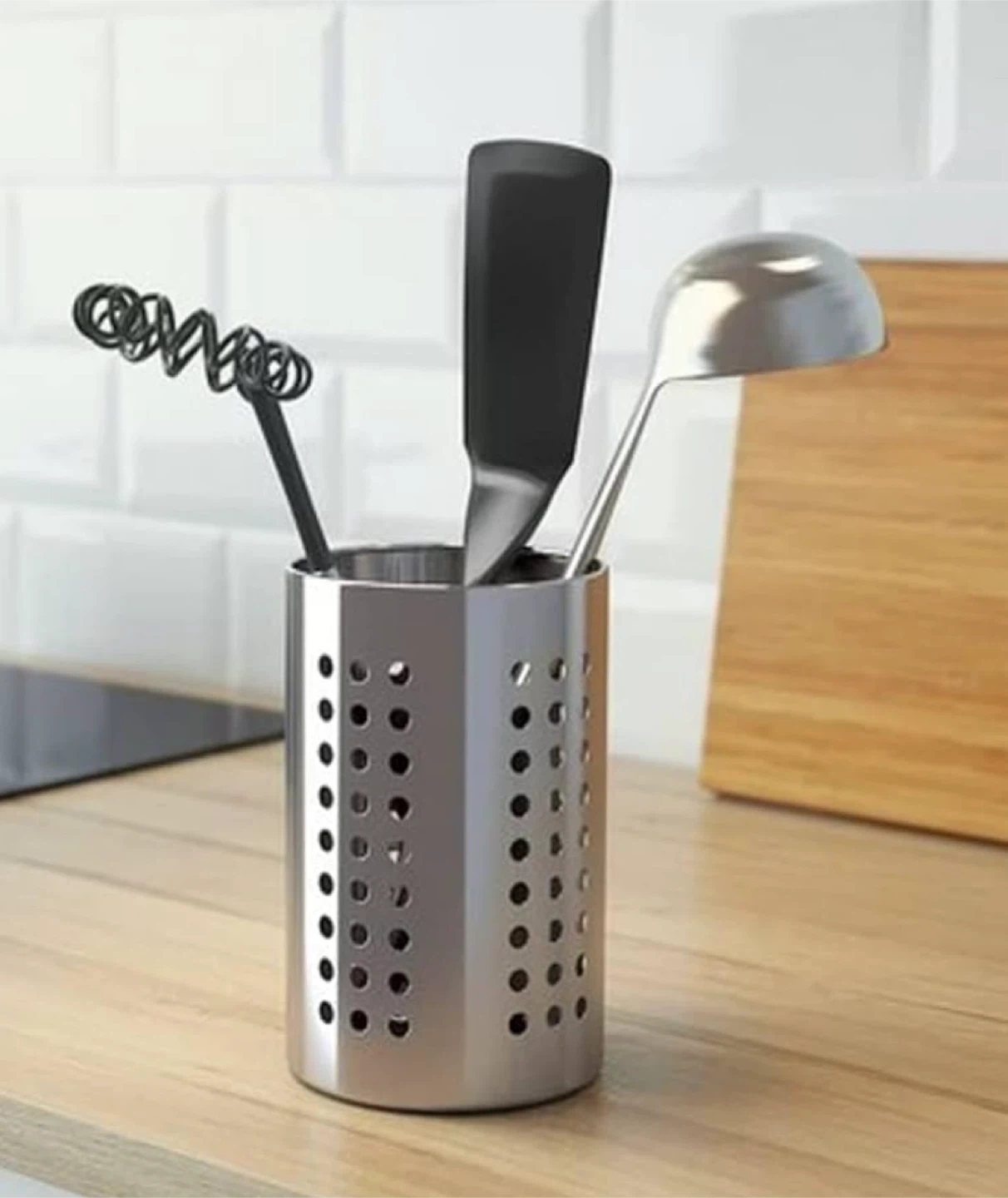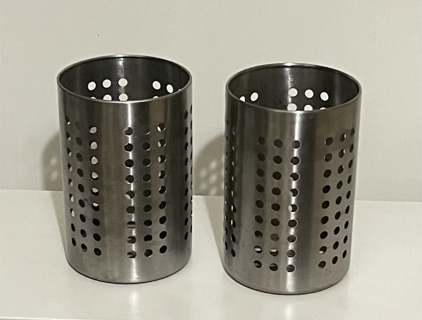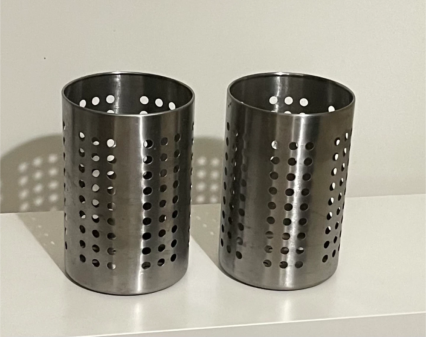 A pair of IKEA stainless steel utensil holders. 7" tall. Same size. Perfect for keeping your kitchen utensils organized. Excellent condition. From smoke-free, pest-free, and pet-free home.